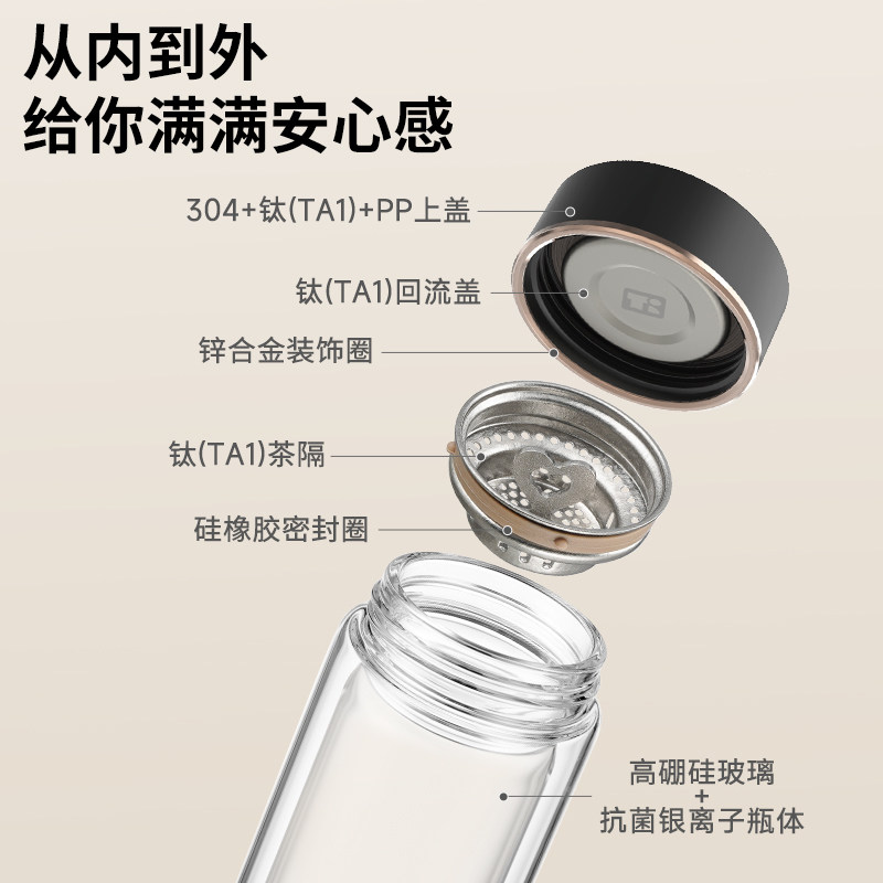 TAFUCO/泰福高钛茶隔泡茶杯便携水杯双层耐热玻璃杯隔热杯便携男