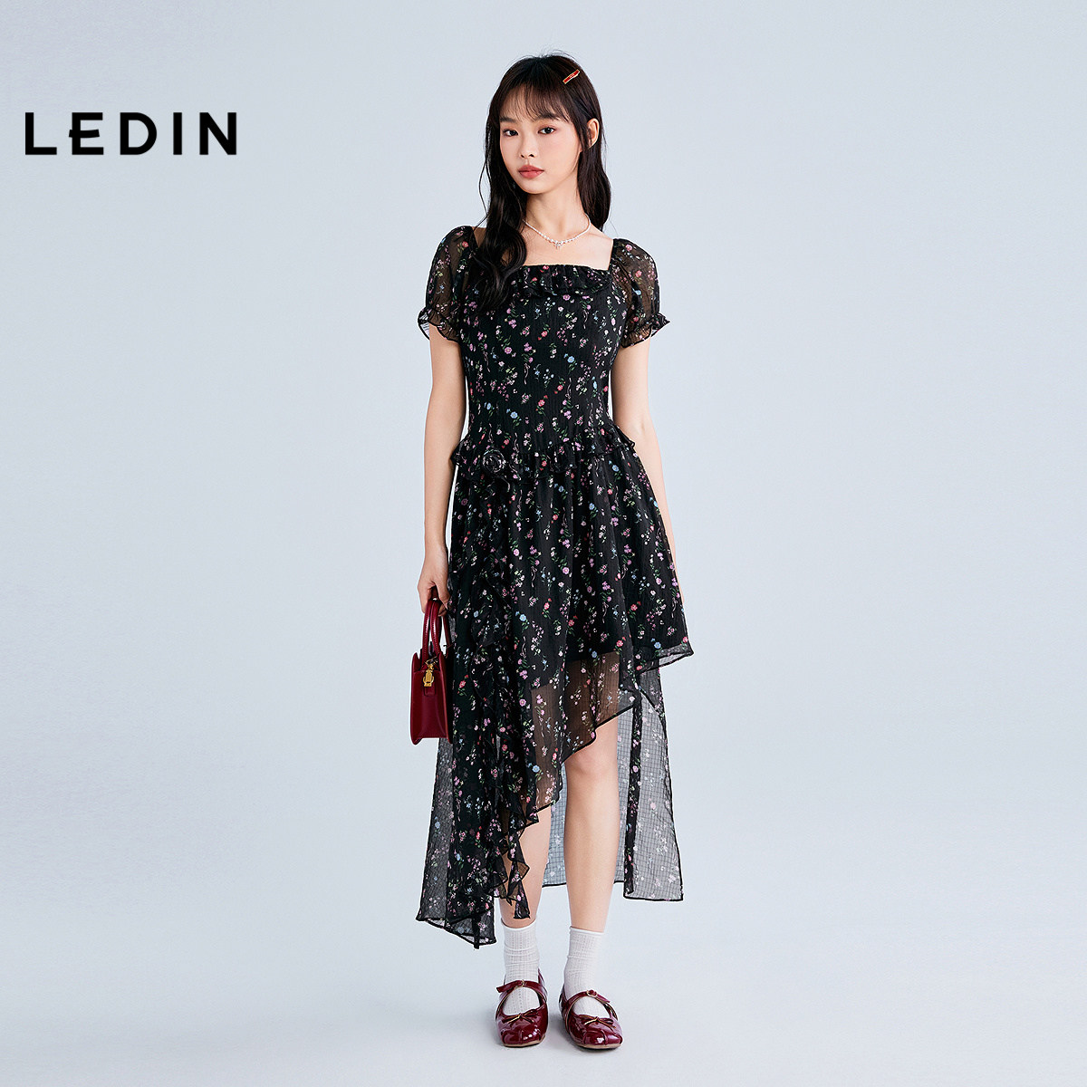 【明星同款】乐町纯欲飘逸感开叉连衣裙25夏季新款裙子C1FAF2616
