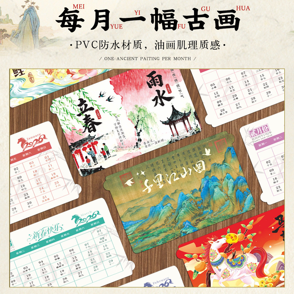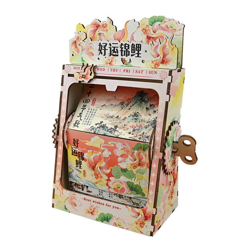 2026马年木制手摇机械翻页台历手工材料国风桌面日历摆件春节礼物