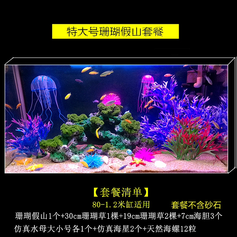 鱼缸造景装饰假山石头草布景仿真水草造景套餐水族箱大小摆件包邮