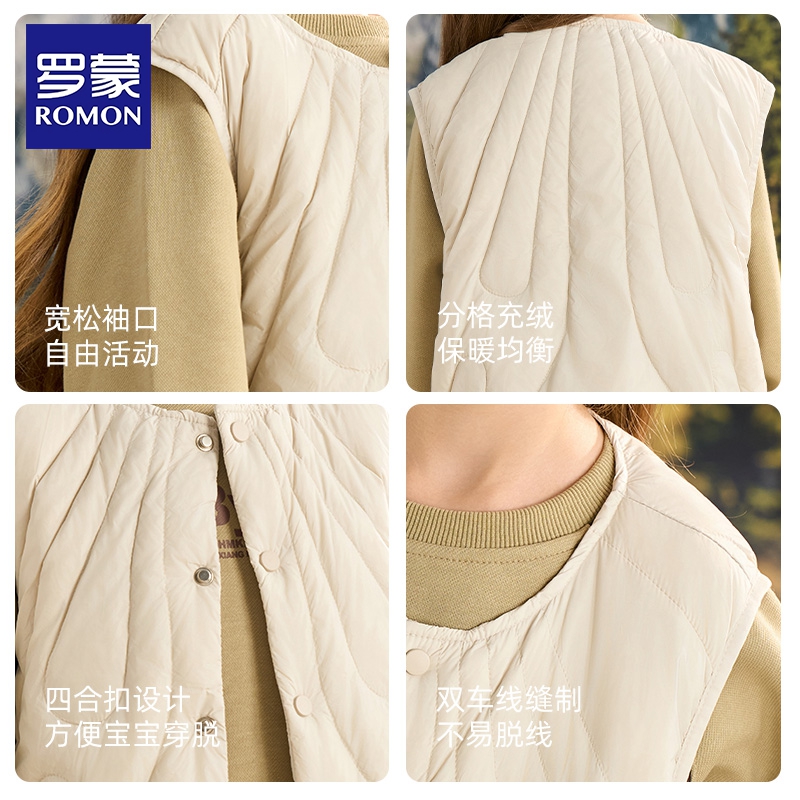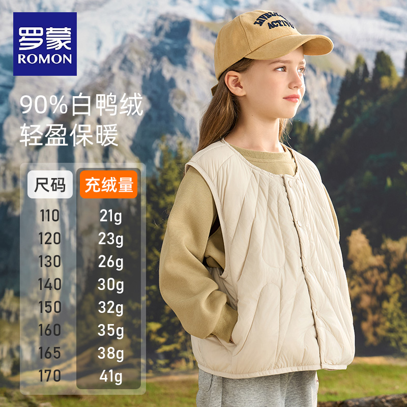 罗蒙儿童轻薄羽绒服马甲背心2025秋冬季新款男女童内胆坎肩中大童