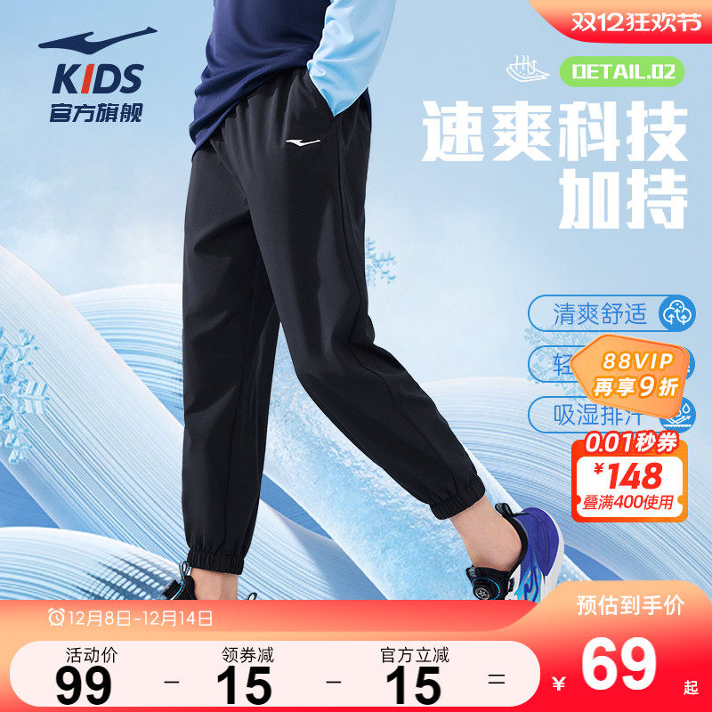 鸿星尔克童装儿童速干防蚊裤夏季防晒长裤九分裤男童薄款运动裤子