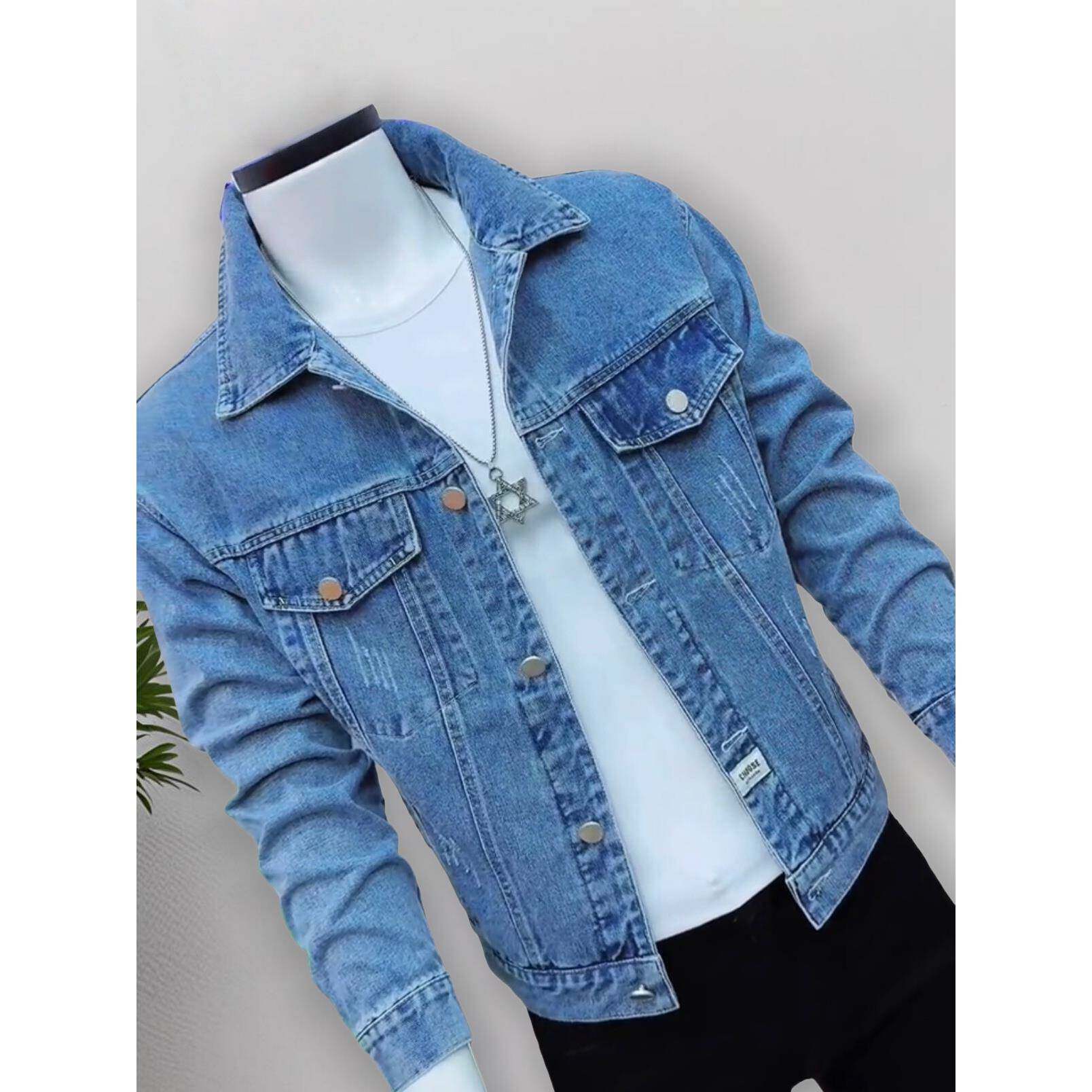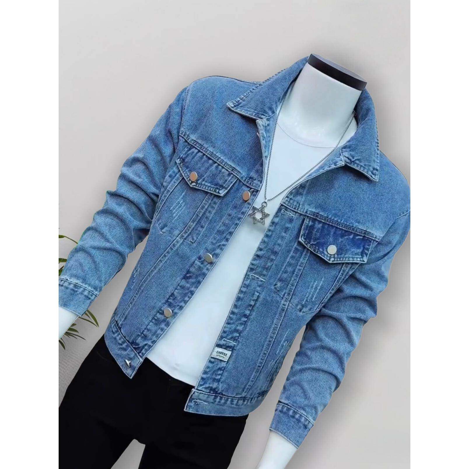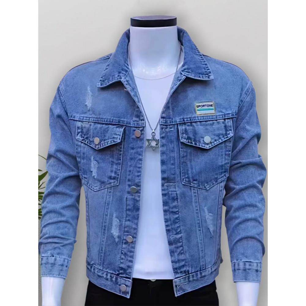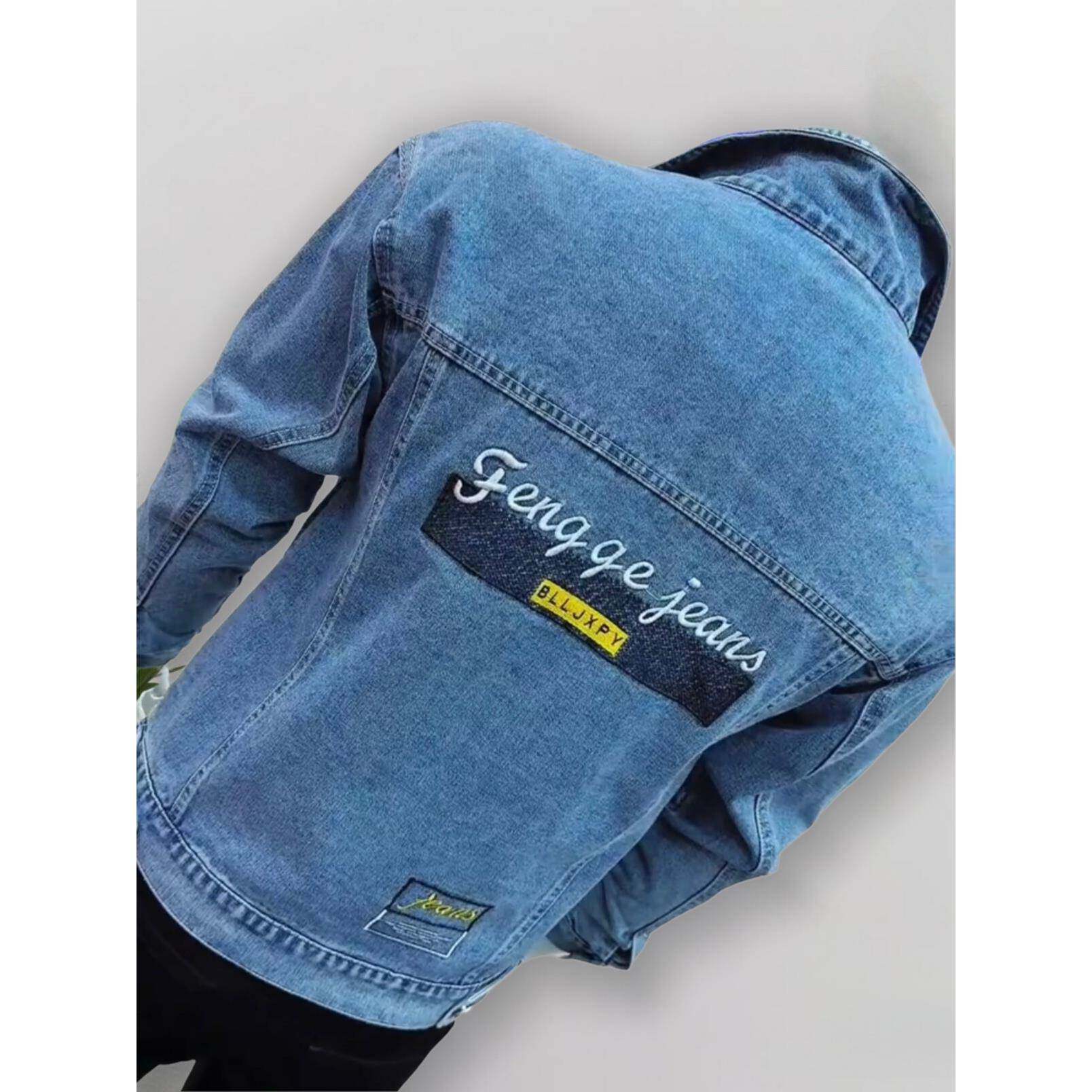 欧货高端牛仔外套男士秋季新款字母刺绣覆古韩版修身百搭轻奢夹克