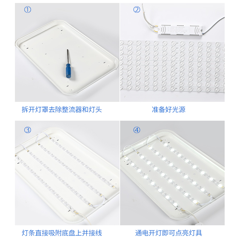 led吸顶灯改造灯板灯条长条灯芯遥控调光 灯带贴片 H灯Z管灯泡透