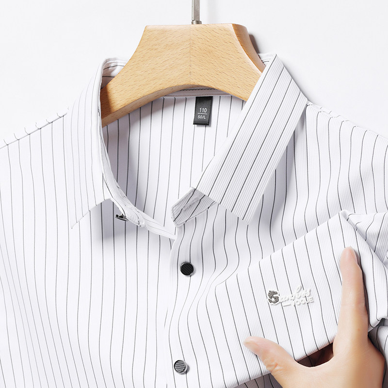 皮尔卡丹春秋季长袖衬衫男士春秋季宽松商务休闲免烫工装条纹衬衣