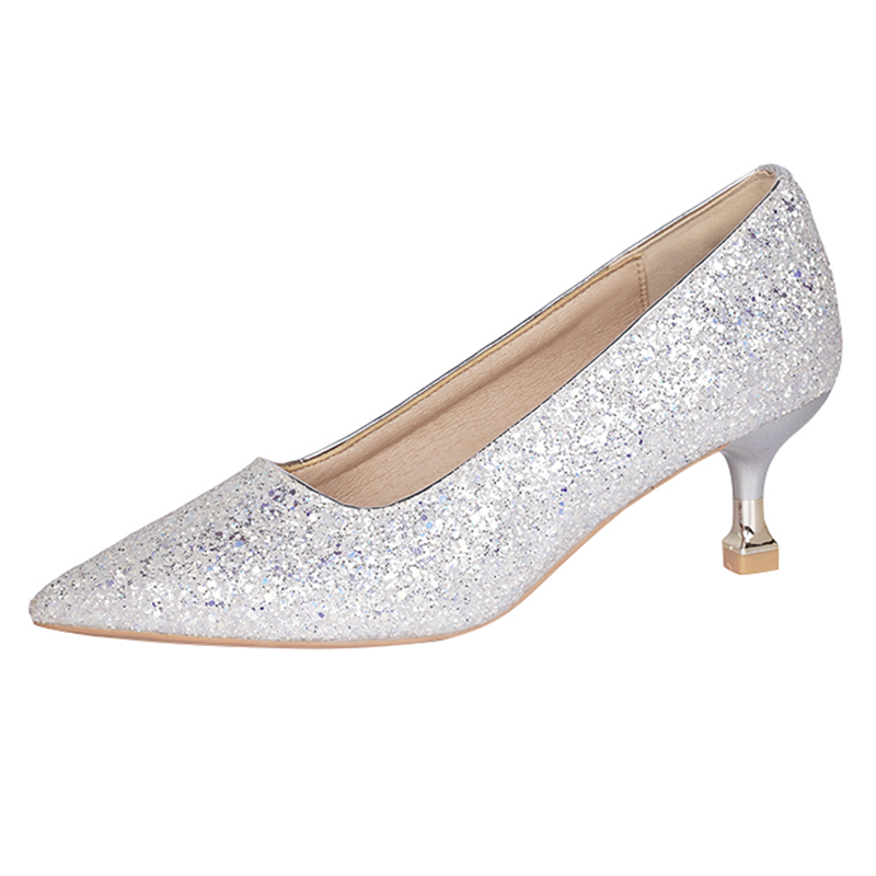 高端新娘婚鞋女细跟水晶高跟鞋气质婚礼日常穿伴娘鞋银色单鞋渐变