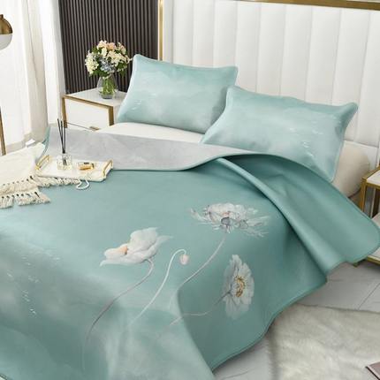 头层牛皮彩绘凉席三件套1.8席子双人床1.5折叠空调软席真皮