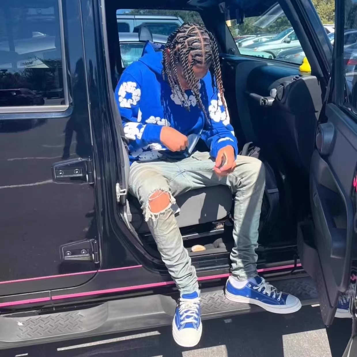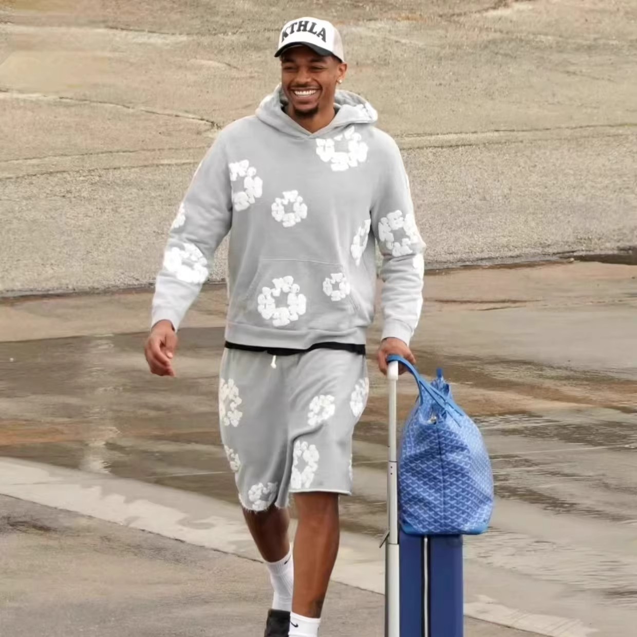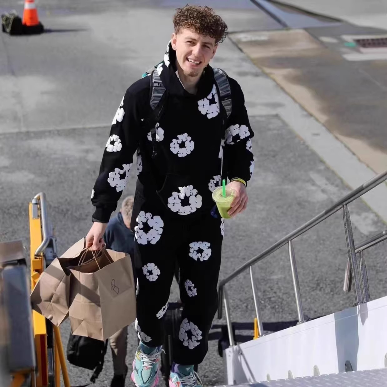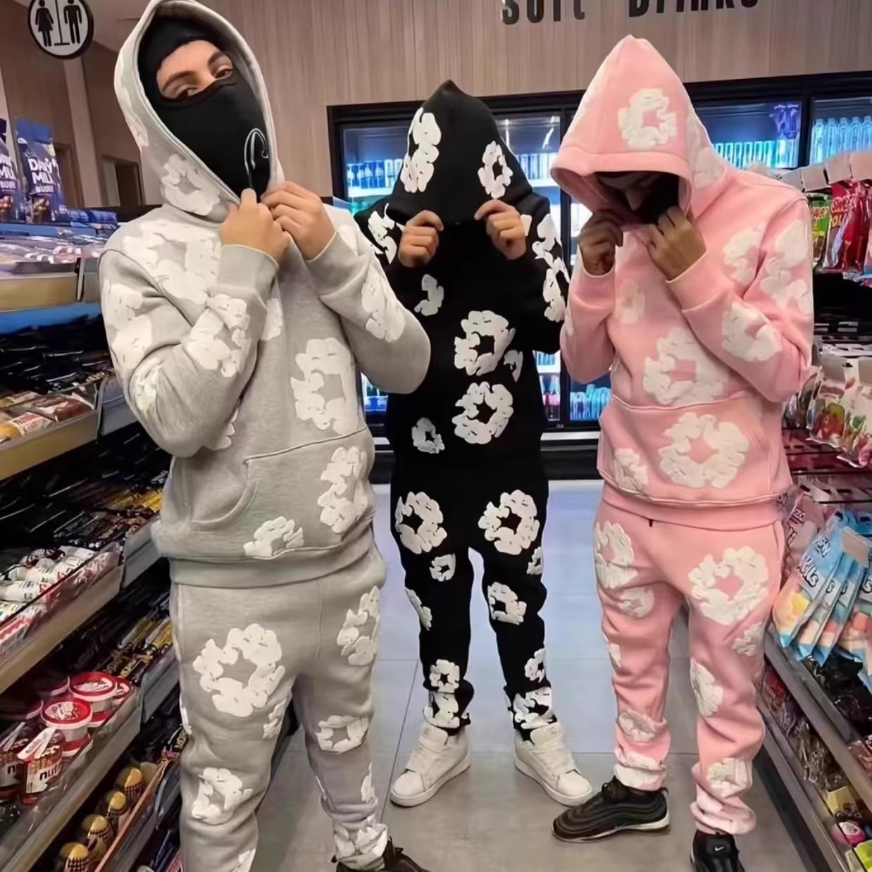 高品质DENIM TEARS木棉花发泡迷彩印花美式宽松连帽卫衣男女帽衫