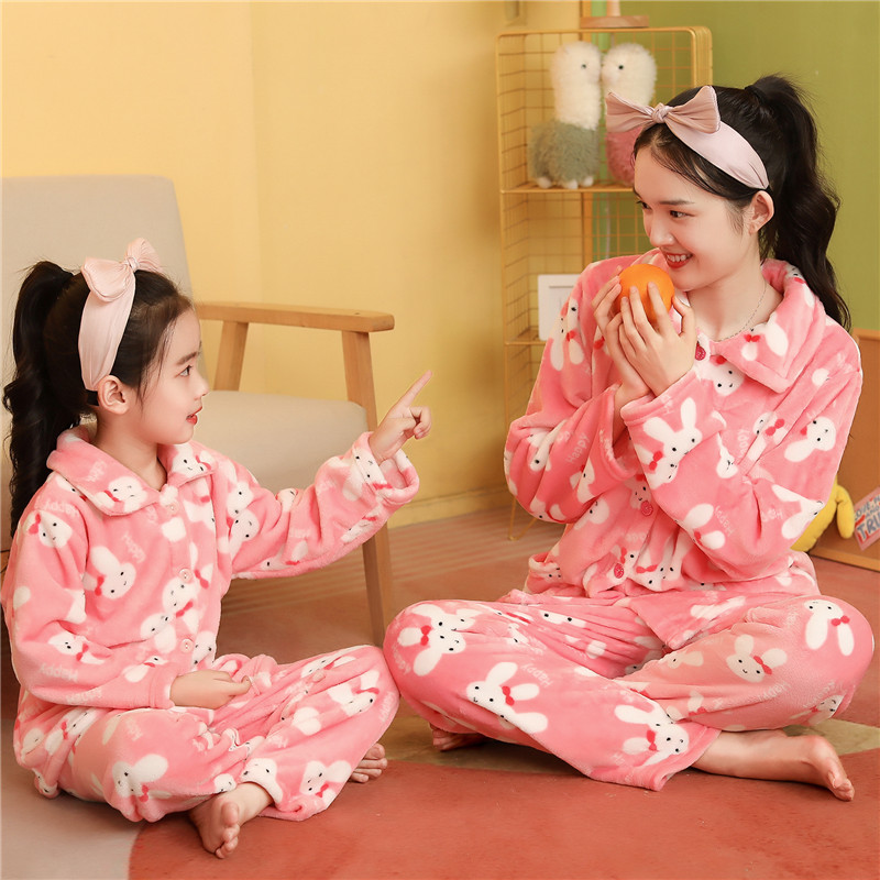 儿童睡衣法兰绒女童男孩秋冬季加厚款珊瑚绒保暖亲子家居服母女装