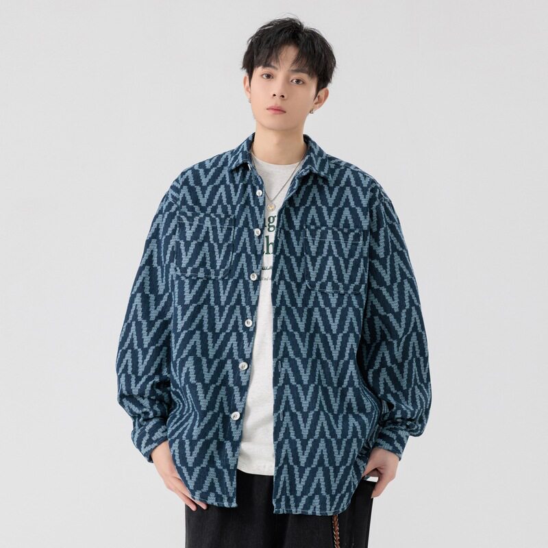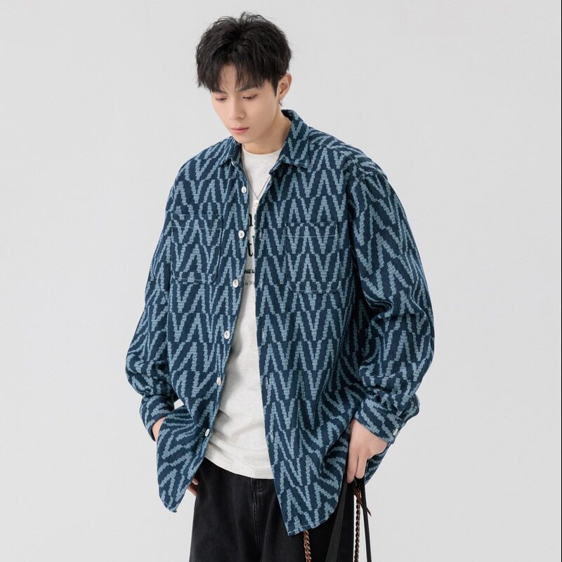 NASA官方联名2026春秋季牛仔衬衫男韩版修身男士长袖内搭衬衣潮流