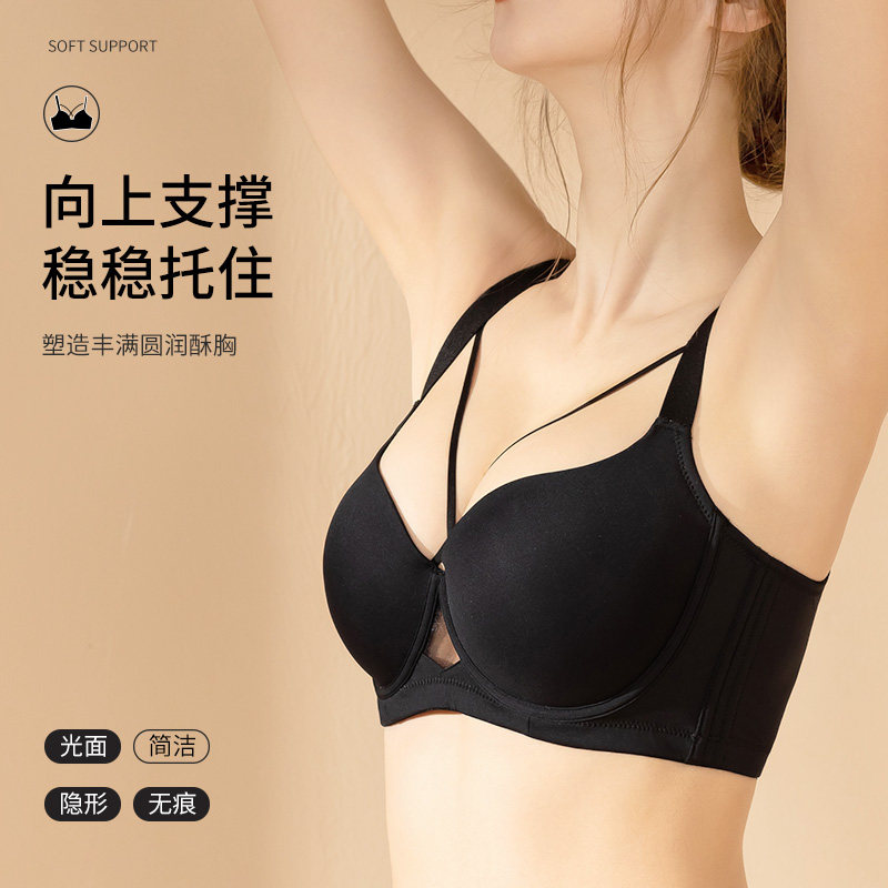 一家缘性感光面无痕文胸聚拢上托防下垂内衣薄款大胸显小胸罩大码
