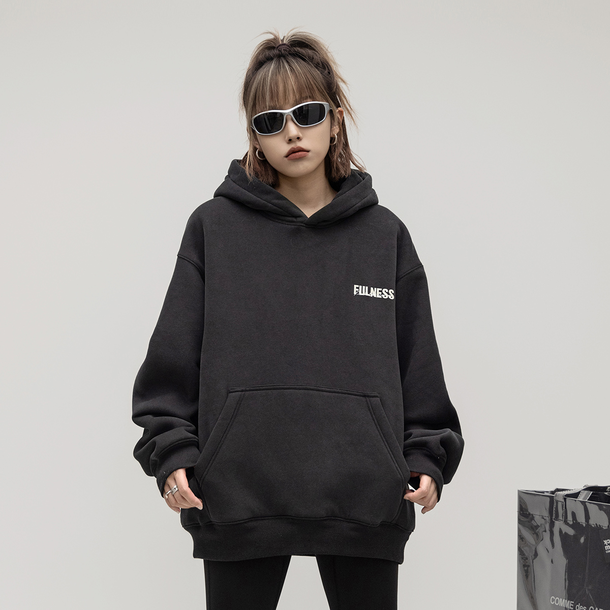 ONE PASS 380g重磅刺绣字母加绒连帽卫衣女春季潮牌新款宽松帽衫