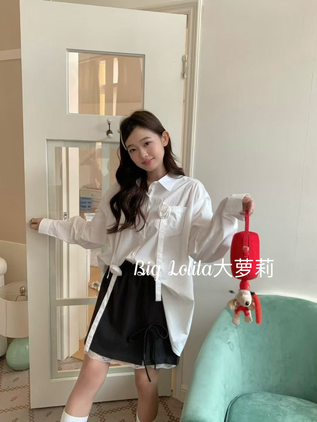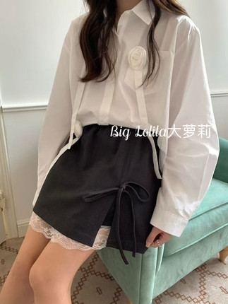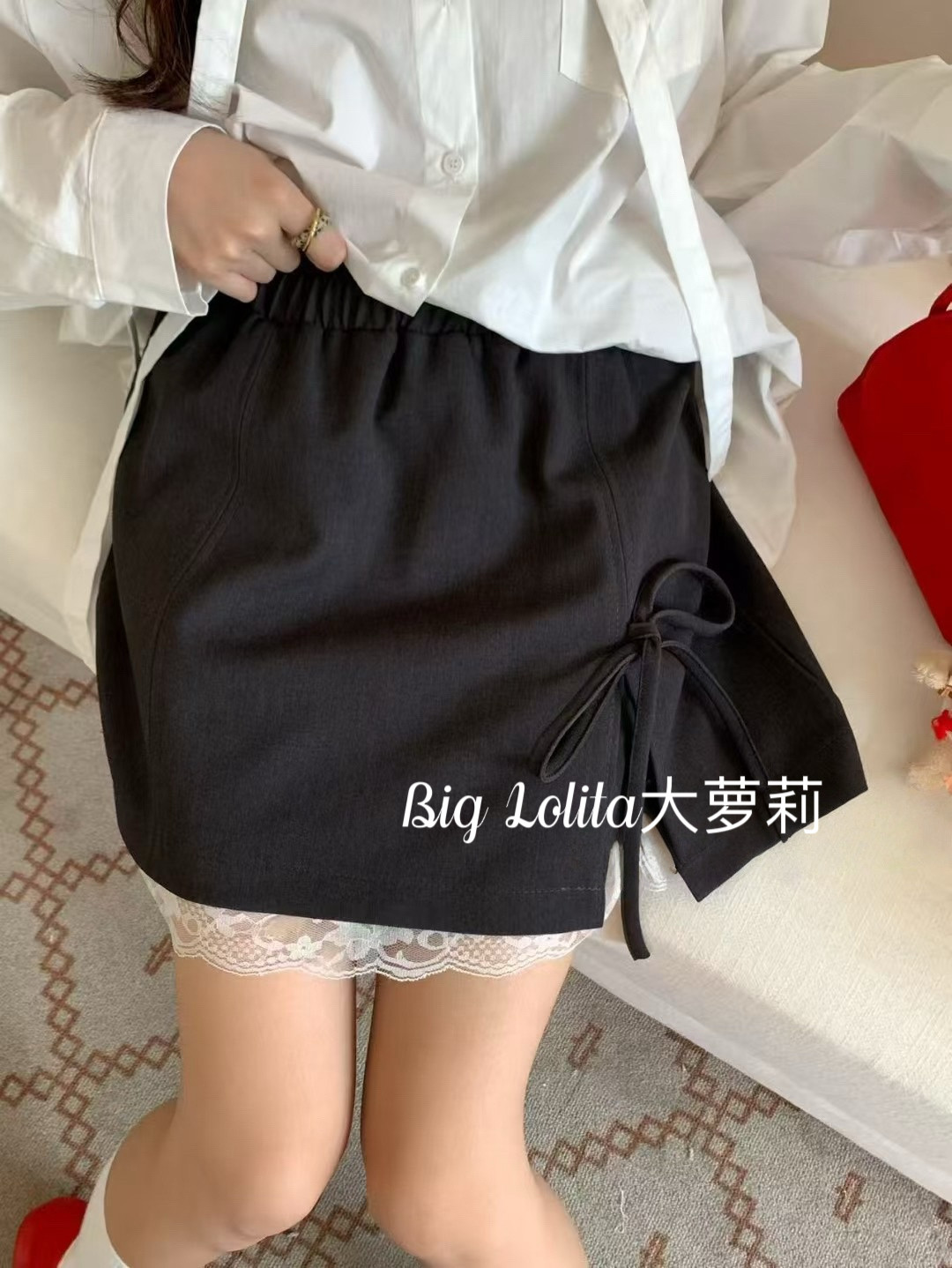 【里约艺术】大码蝴蝶结蕾丝半身裙防走光显瘦高腰A字短裙子胖MM