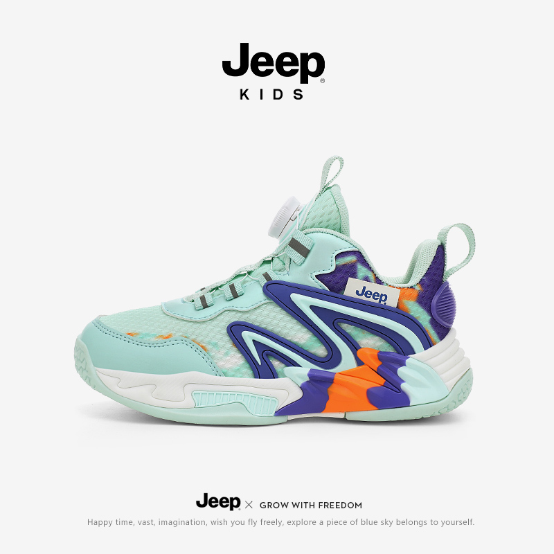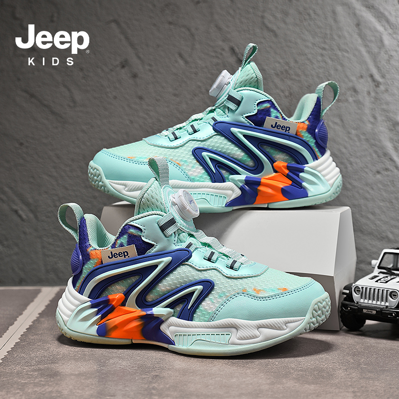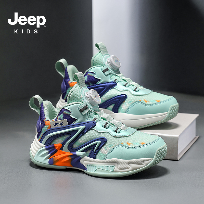 Jeep男童实战篮球鞋春夏新款青少年网面透气中大童运动鞋旋钮球鞋