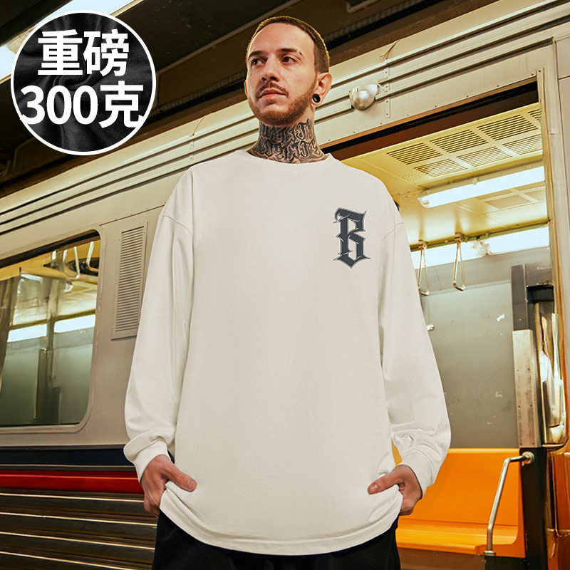 2025白色T恤大码男装百搭春秋季纯棉长袖打底衫宽松潮牌简约体恤