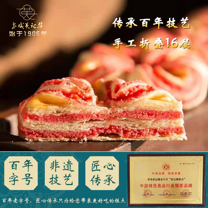 传统中式糕点芯形桃花酥饼订婚喜饼零食英记楼老式茶点心青岛特产