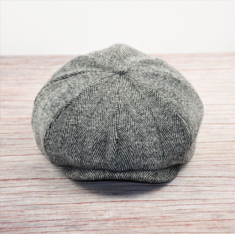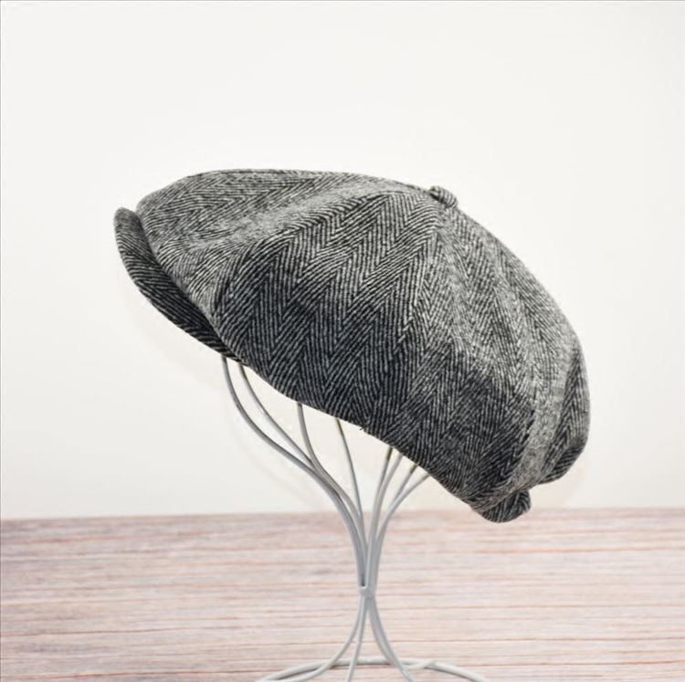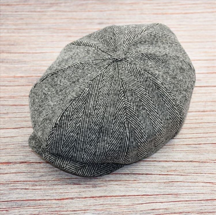 新品英伦风条纹鸭舌帽青中年贝雷帽硬汉风时尚休闲八角帽男士帽子