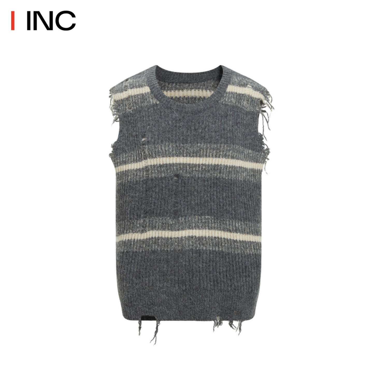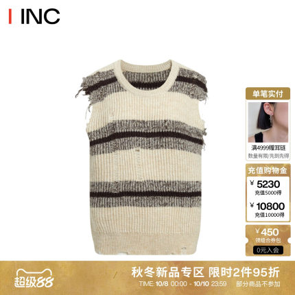 UNRESTRAIN 条纹针织背心女25AW秋季新款圆领无袖毛边上衣IINC