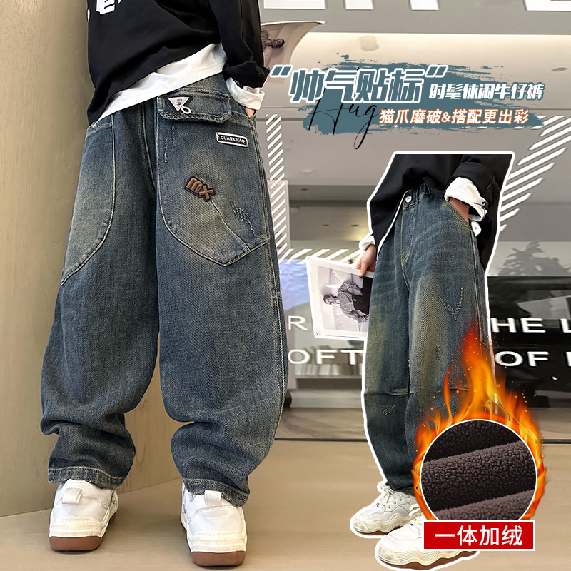男童牛仔裤春秋款帅气中大童裤子儿童休闲裤男孩春季韩版长裤宽松