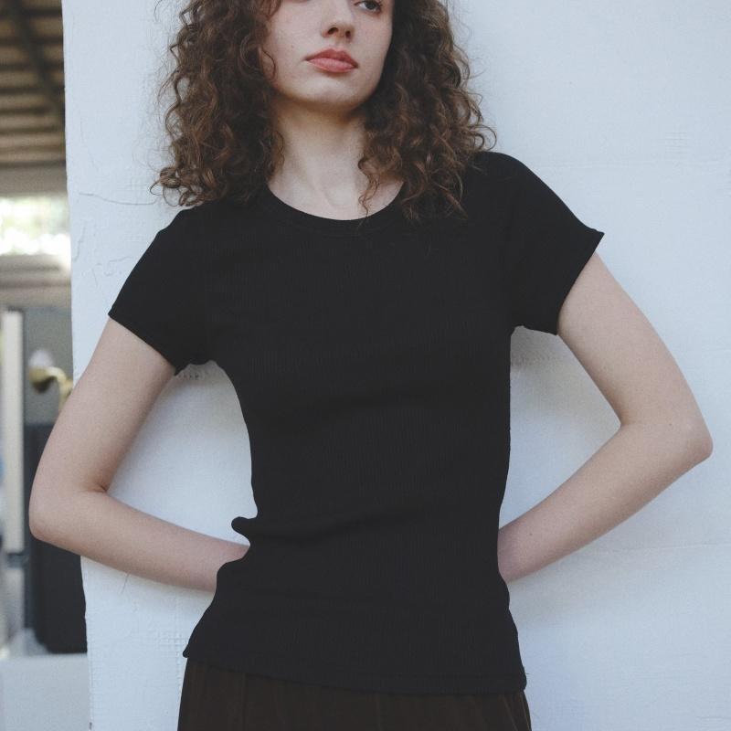 MollyRosa正肩螺纹纯棉短袖T恤女2025春夏纯色百搭修身打底衫新款