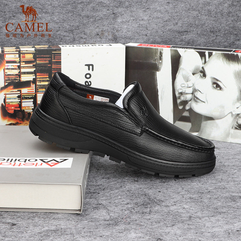 骆驼男鞋秋季2022年新款男士商务休闲鞋圆头软底透气皮鞋男爸爸鞋