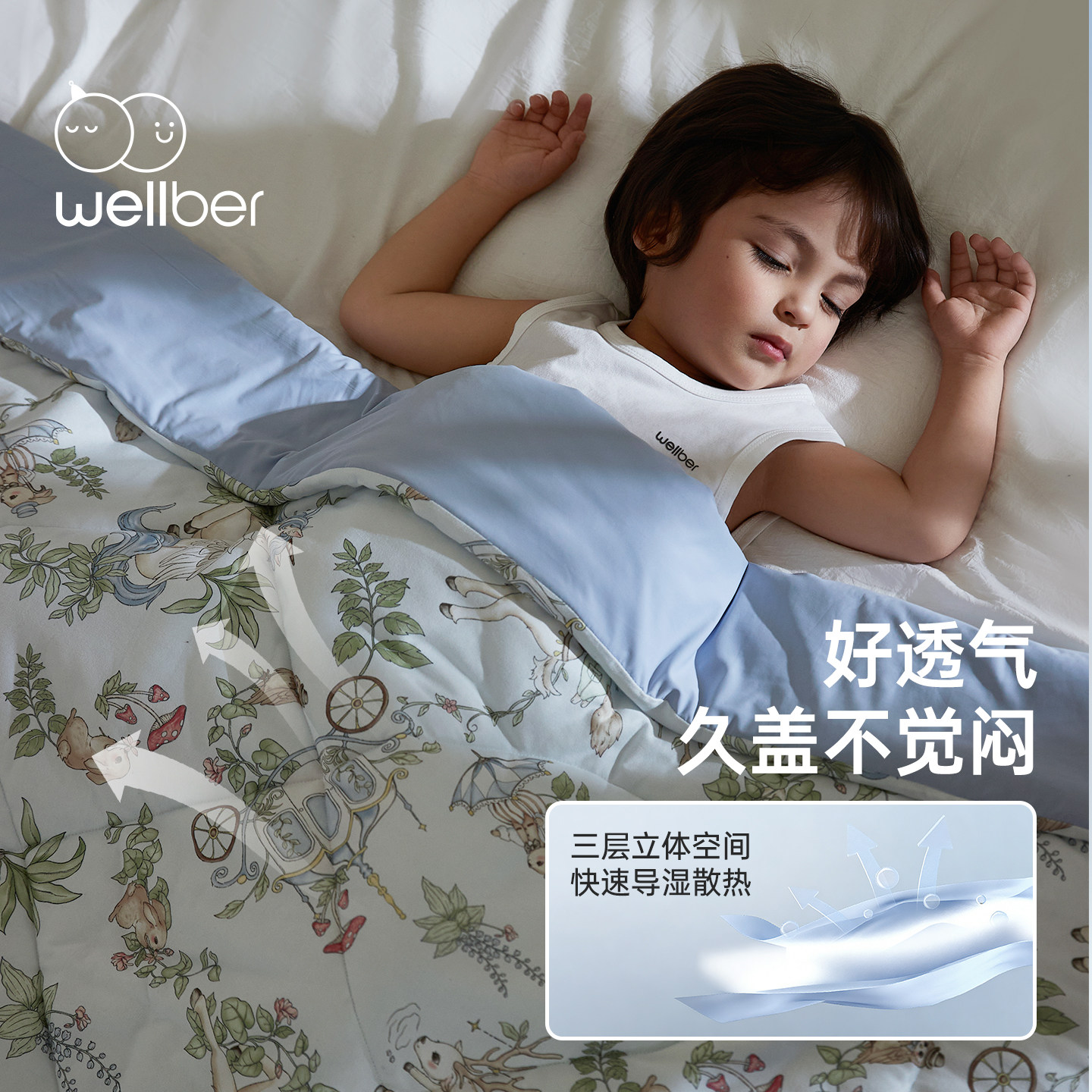 威尔贝鲁婴儿夏凉被宝宝被子凉感小盖毯夏季幼儿园儿童空调被薄款