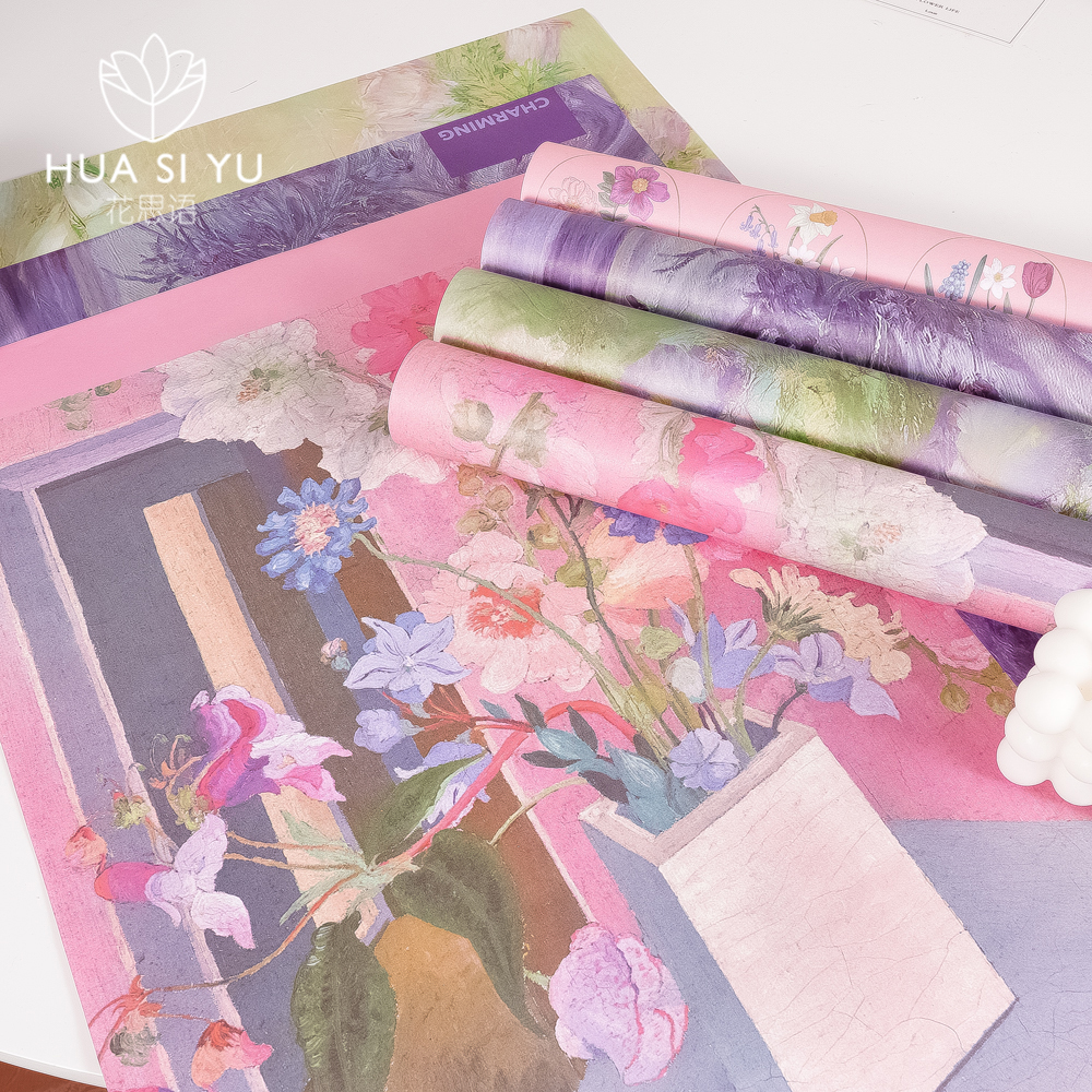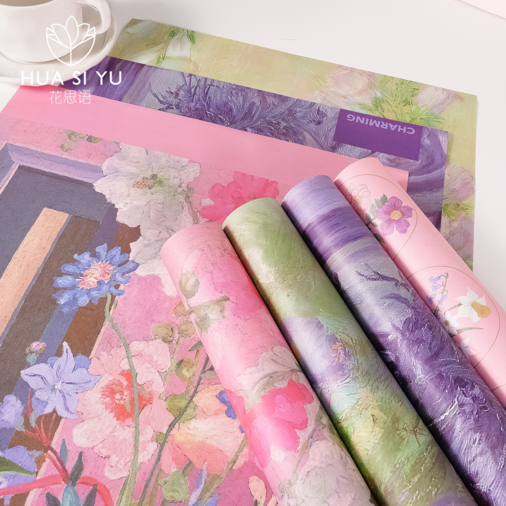 野兽派轻奢油画风彩色包装纸 鲜花花束花艺礼品包花纸diy材料资材