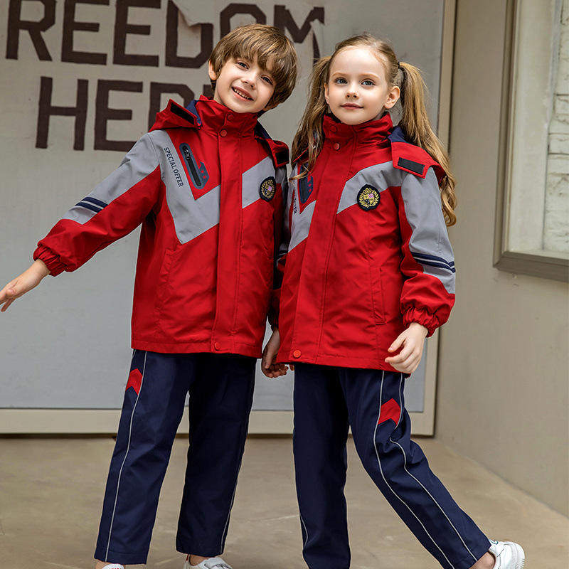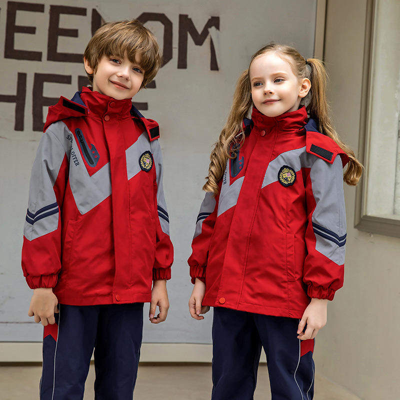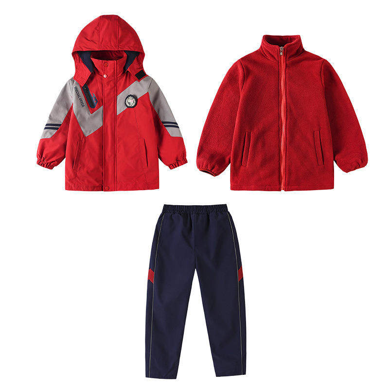 小学生校服冲锋衣三件套加绒幼儿园园服秋冬装红黄蓝色班服运动服