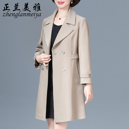 高贵夫人风衣妈妈春装2024新款中老年女装春秋洋气外套大码中长款