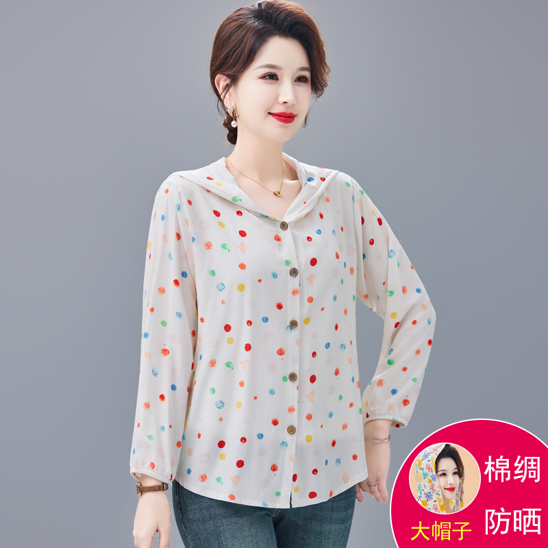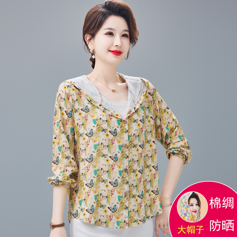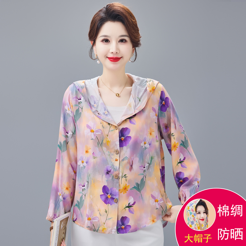 中年女2025夏季轻薄棉绸休闲碎花连帽外套宽松凉爽透气防晒衣外穿
