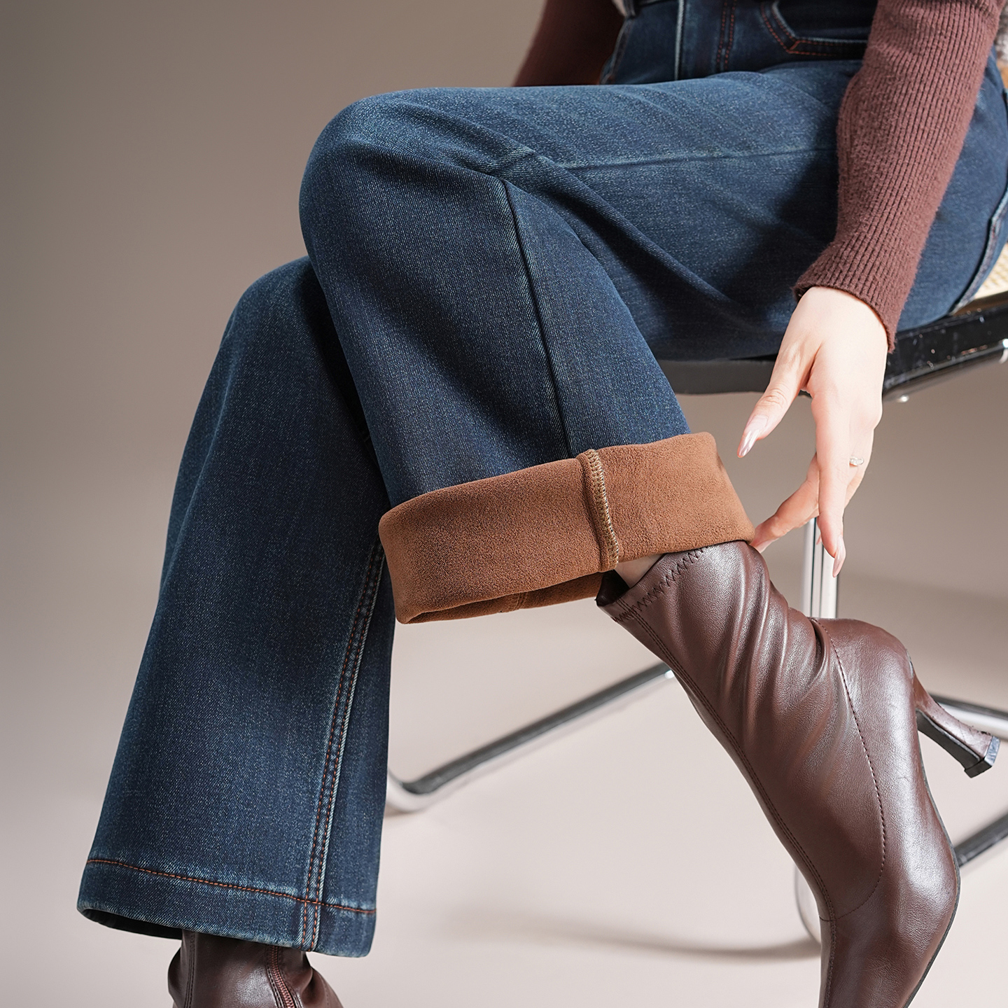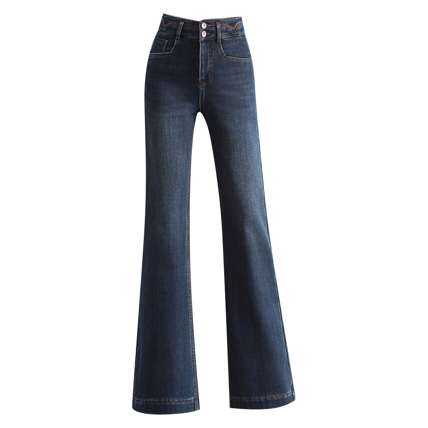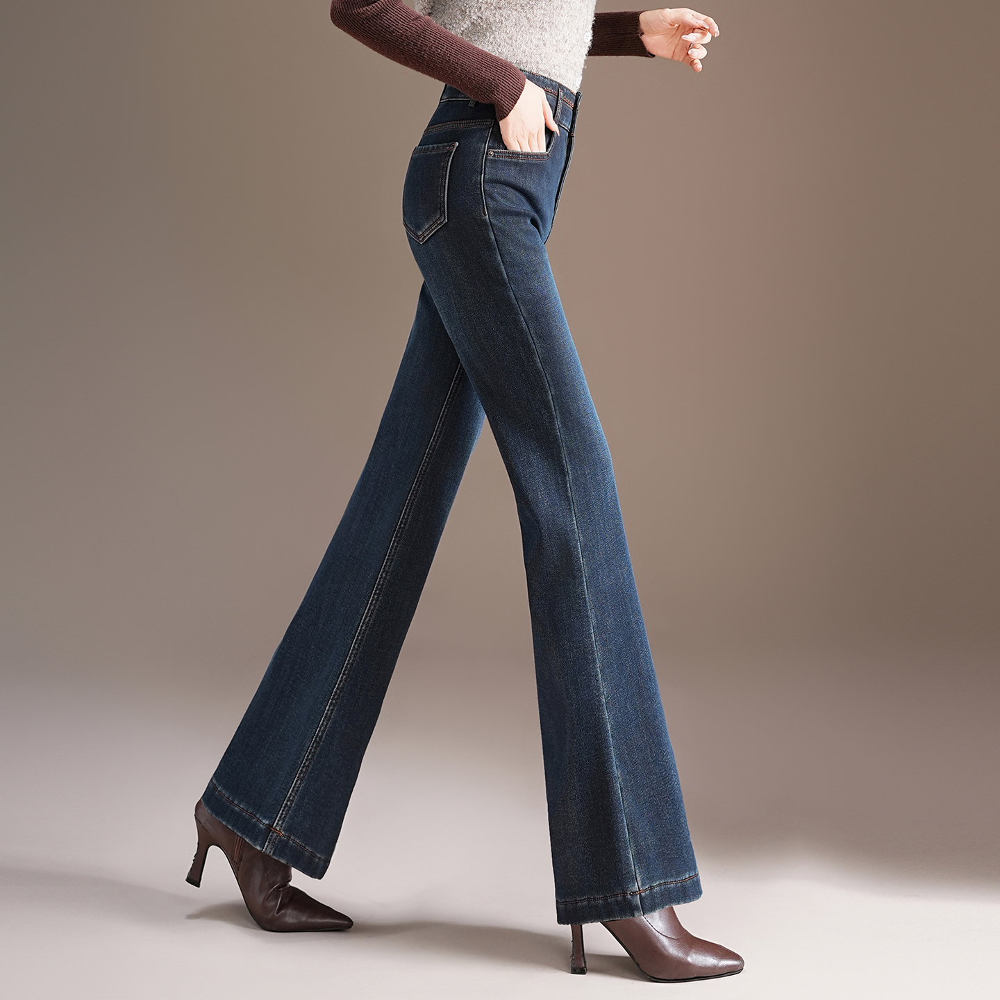 复古蓝微喇牛仔裤女2025新款秋冬大码女裤高腰弹力加绒直筒喇叭裤