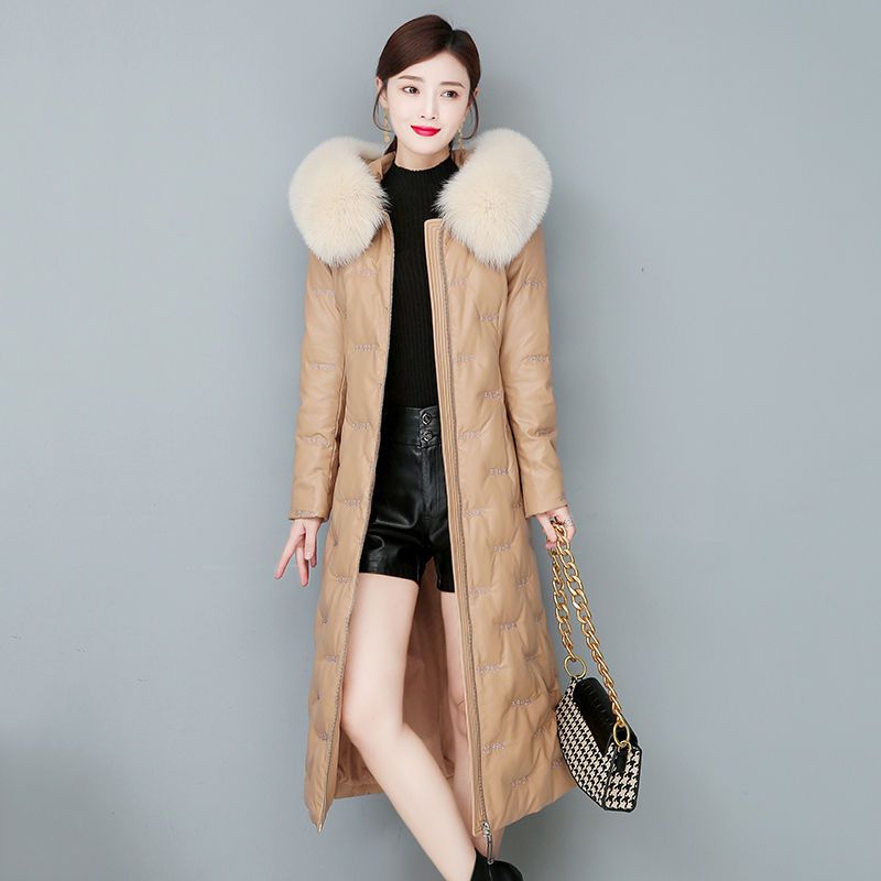 2025冬新款海宁真皮羽绒服女中长款连帽皮衣狐狸毛领加厚皮草外套