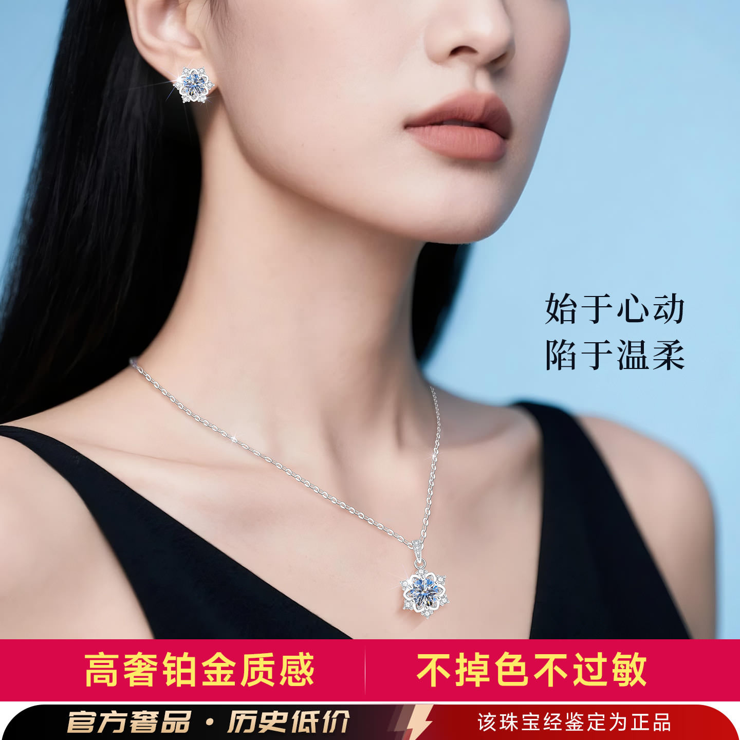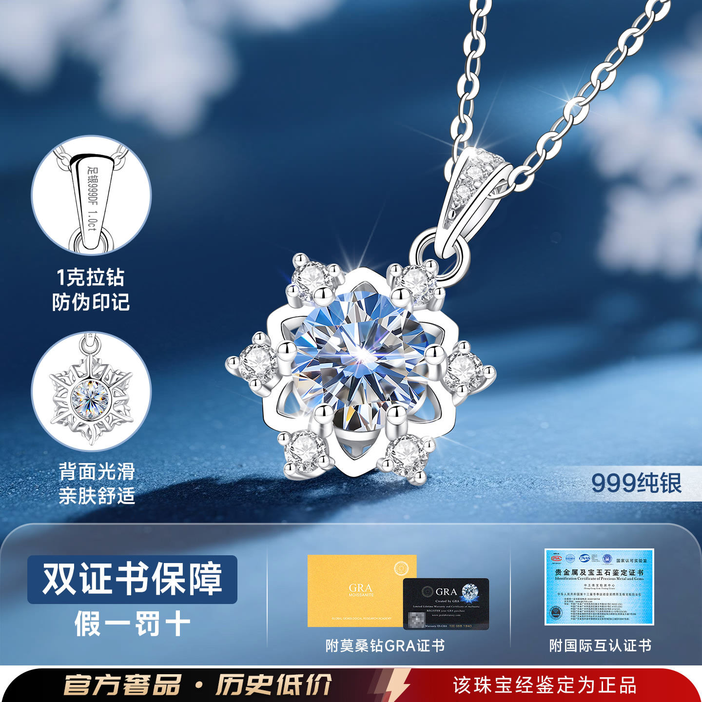 雪花999纯银999银项链耳钉女款2026新款女士女培育莫桑钻吊坠女生