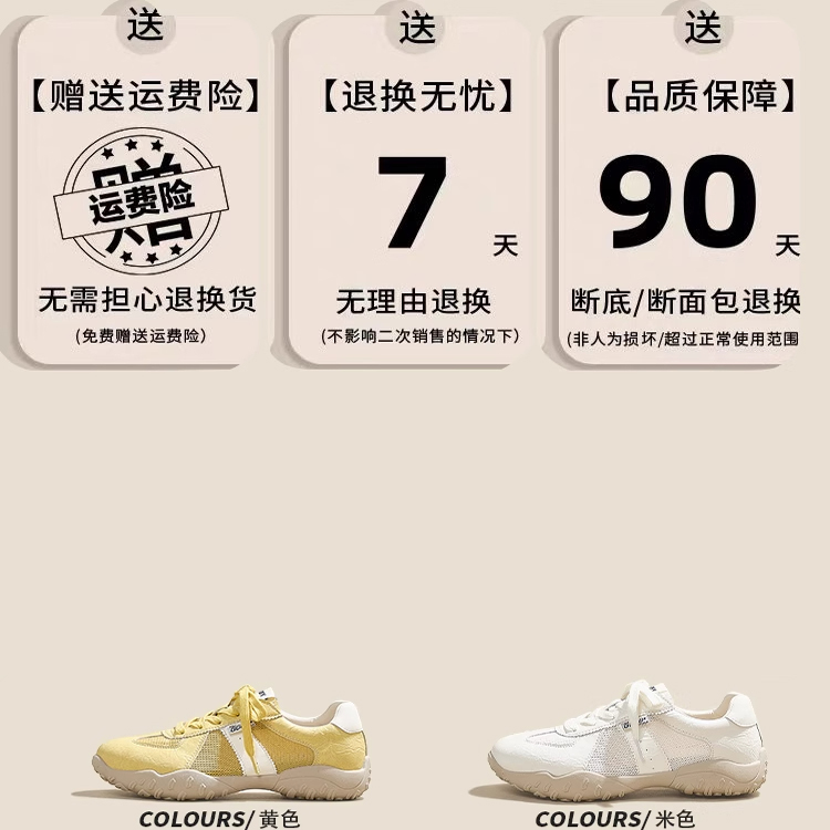 真皮德训鞋女2025夏新款黄色软底网面透气厚底小白鞋显脚小阿甘鞋