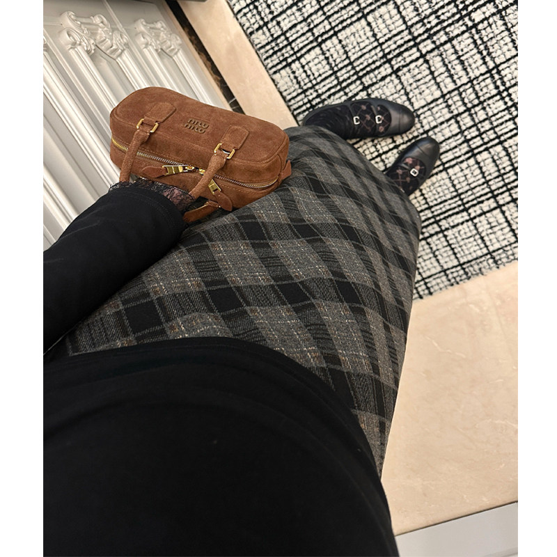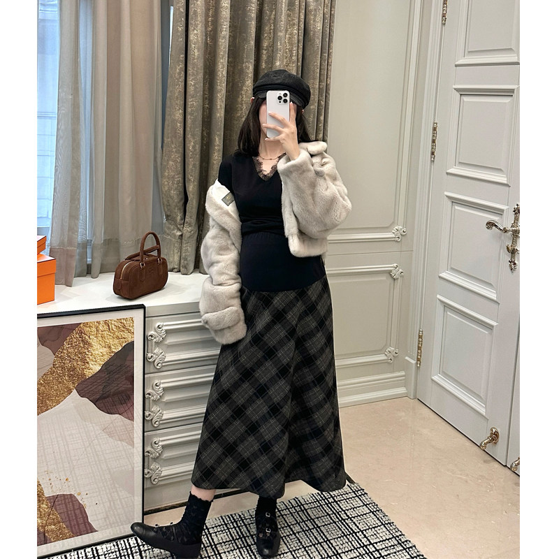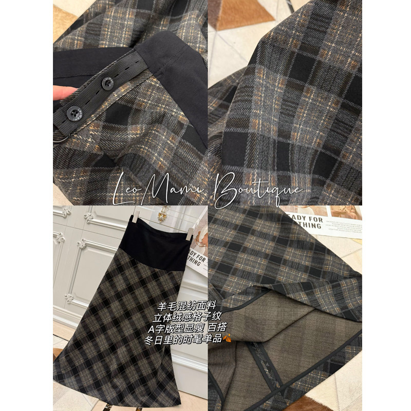 LeoMami孕妇装秋冬复古羊毛格子半身裙显瘦气质高腰毛呢A字伞裙
