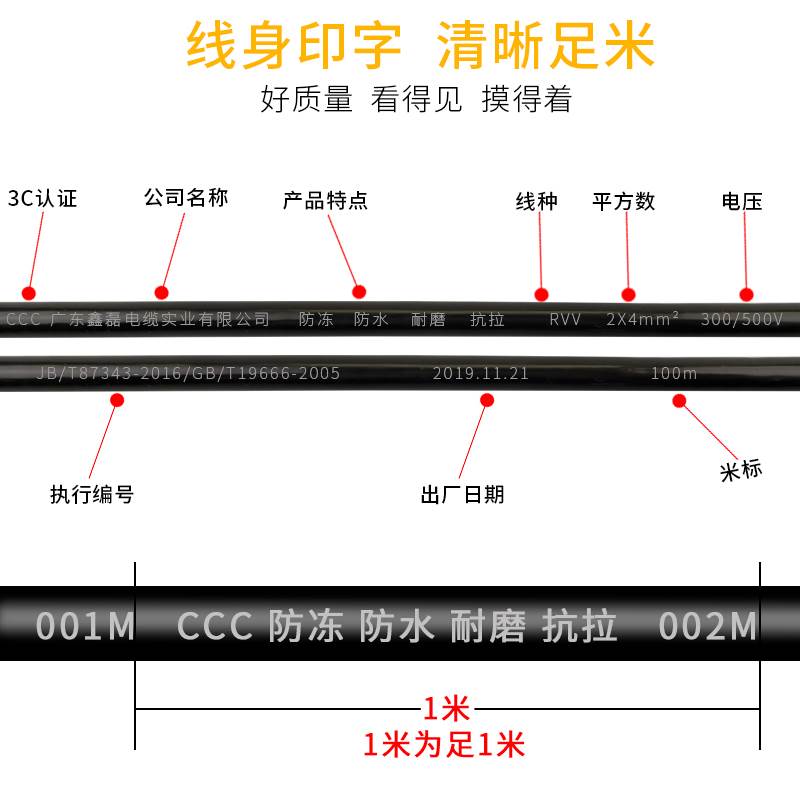 国标二芯1.5/2.5/4/6平方电线 线电缆线 线防冻防水护套线 线电源