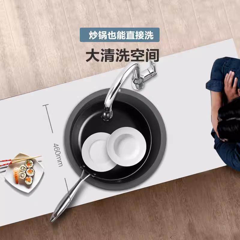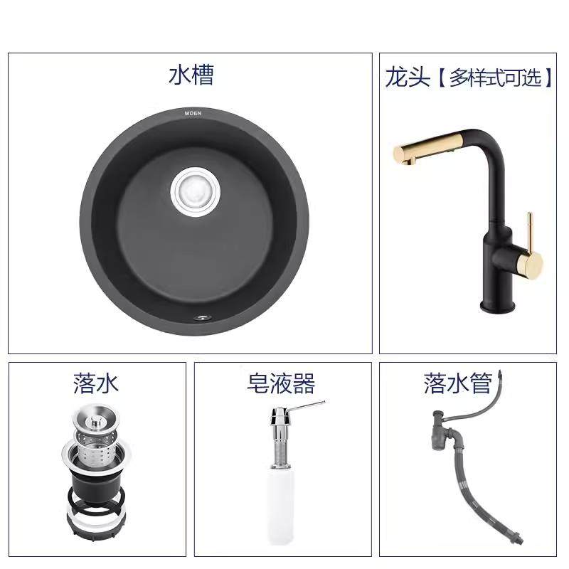 摩恩石槽单槽水槽黑色花岗岩厨房洗菜盆洗碗盆圆槽27903BL/OAT