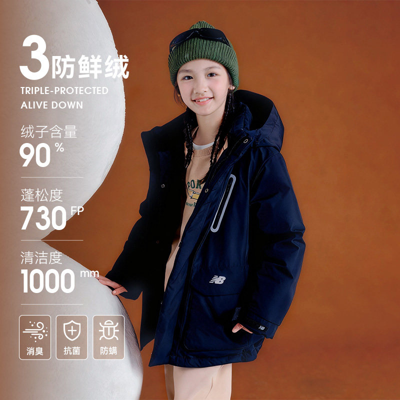 【90%绒子含量】 nb官方童装 冬季新品中长款保暖鸭绒连帽羽绒服