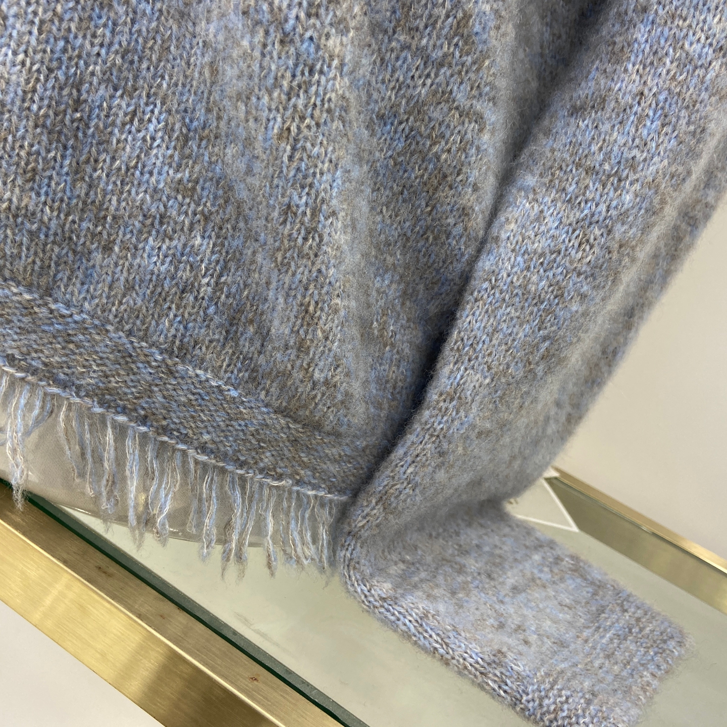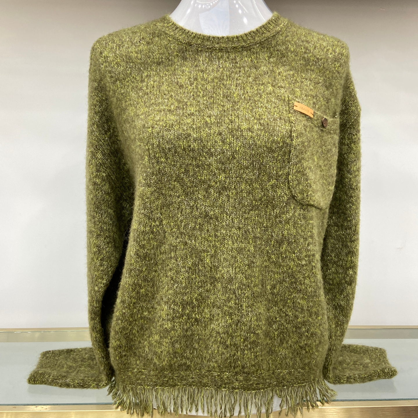 662高端时尚休闲羊绒针织毛衣女士秋冬宽松圆领时髦流苏摆羊毛衫