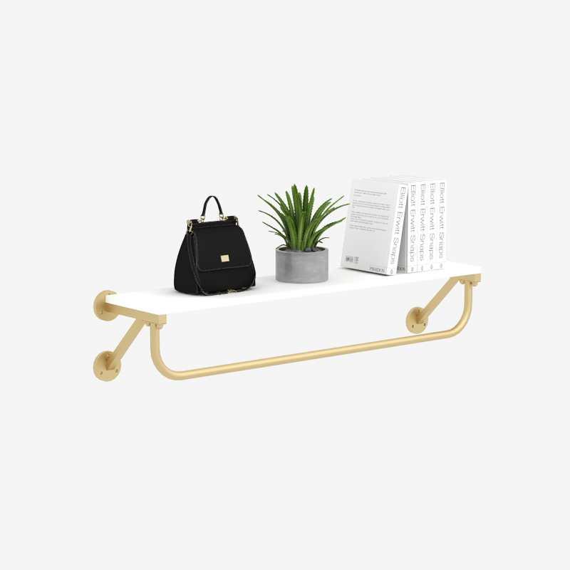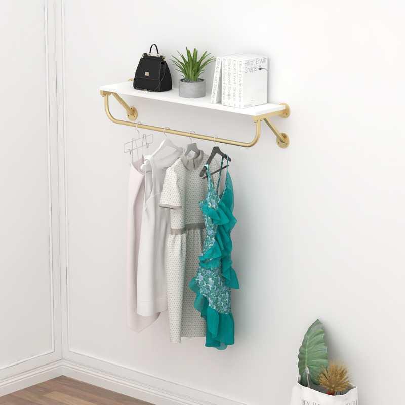 服装店上墙展示架男女装店墙上壁挂带板侧挂衣服架子铁艺金色货架