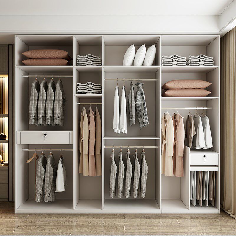 新衣柜现代简f约家用卧室白色女生柜子实木四六一门到顶整体大衣