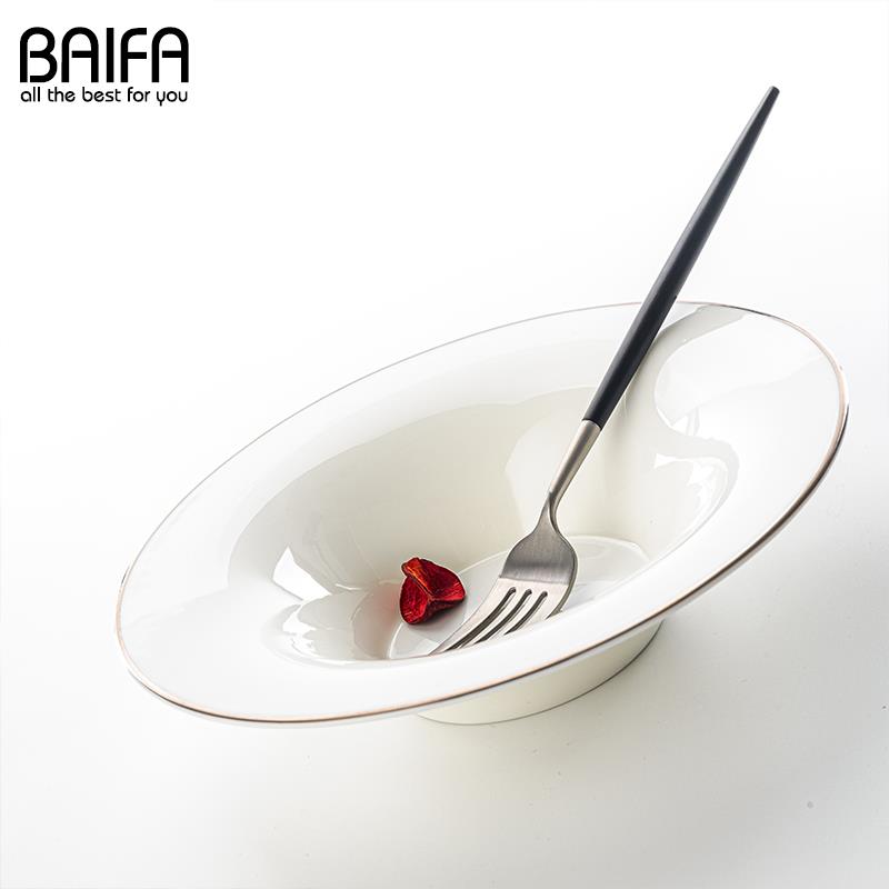 西餐盘创意金边骨瓷家用陶瓷盘子沙拉盘深汤盘甜点草帽盘餐具套装