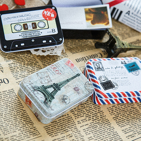 卡通长方形铁盒子马口铁收纳盒复古首饰卡片盒口红化妆品小铁盒