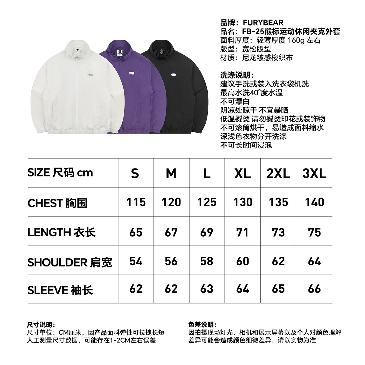 FURYBEAR军旅风系列刺绣熊标美式短身宽松版休闲运动夹克风衣外套
