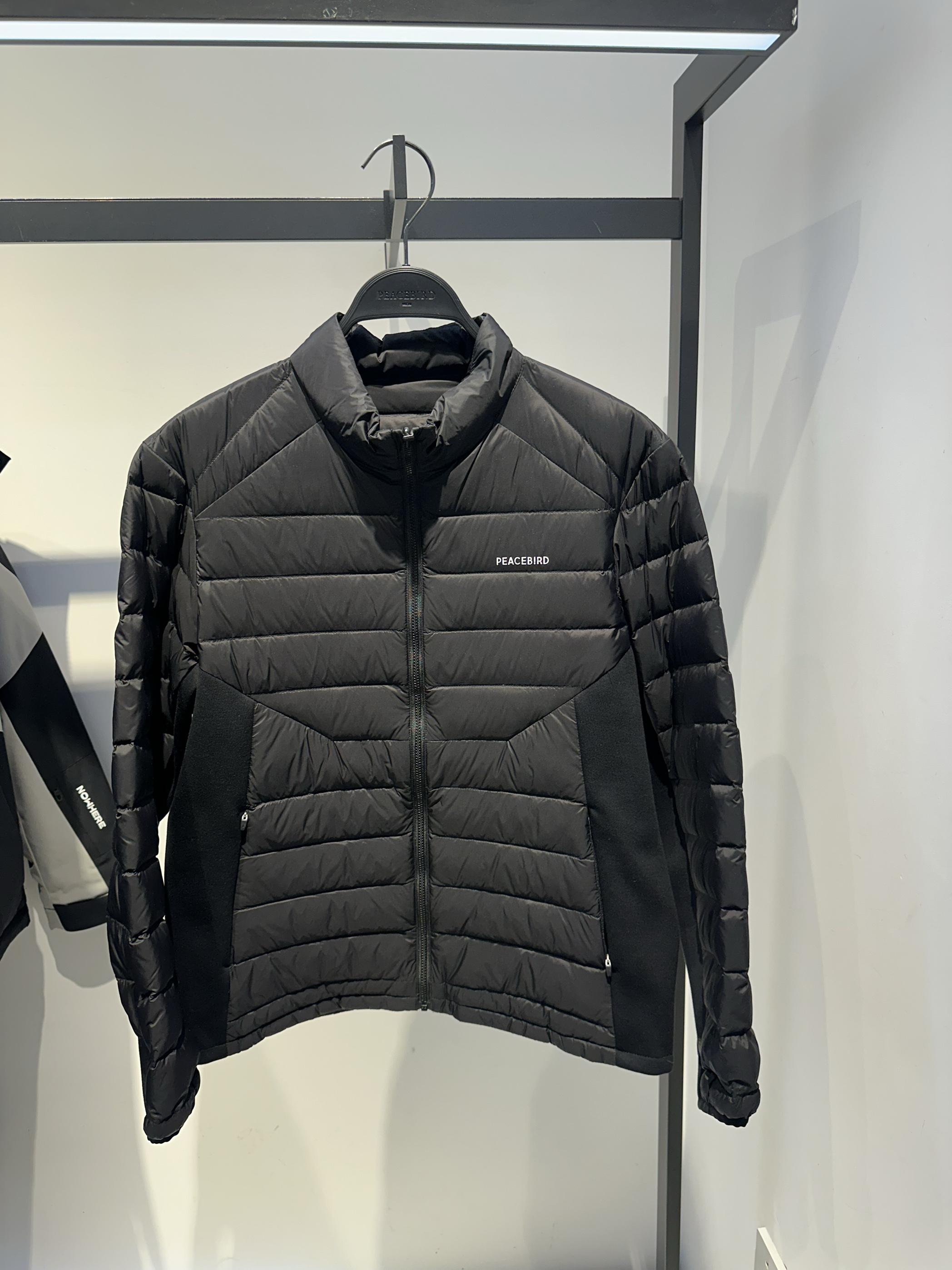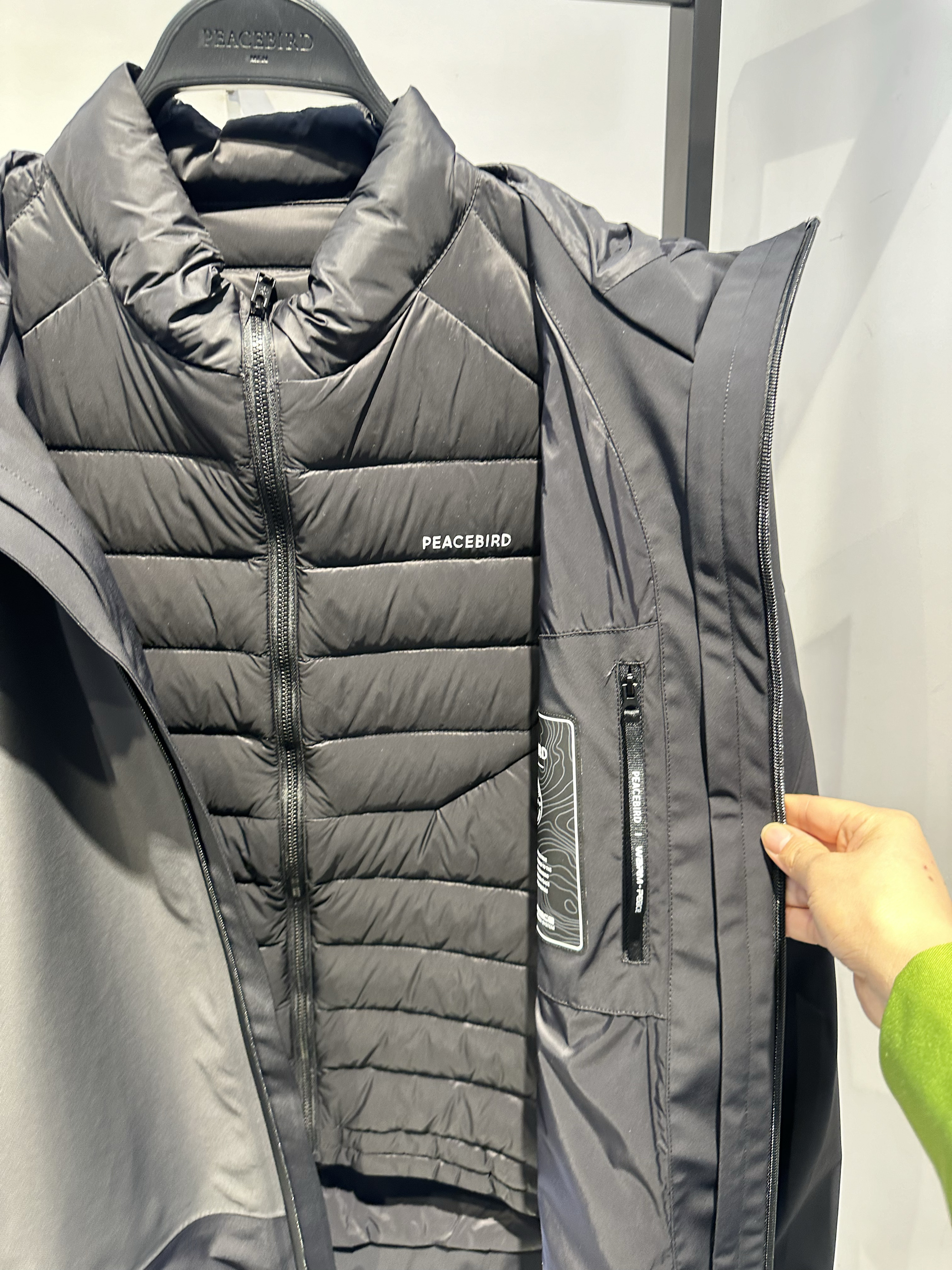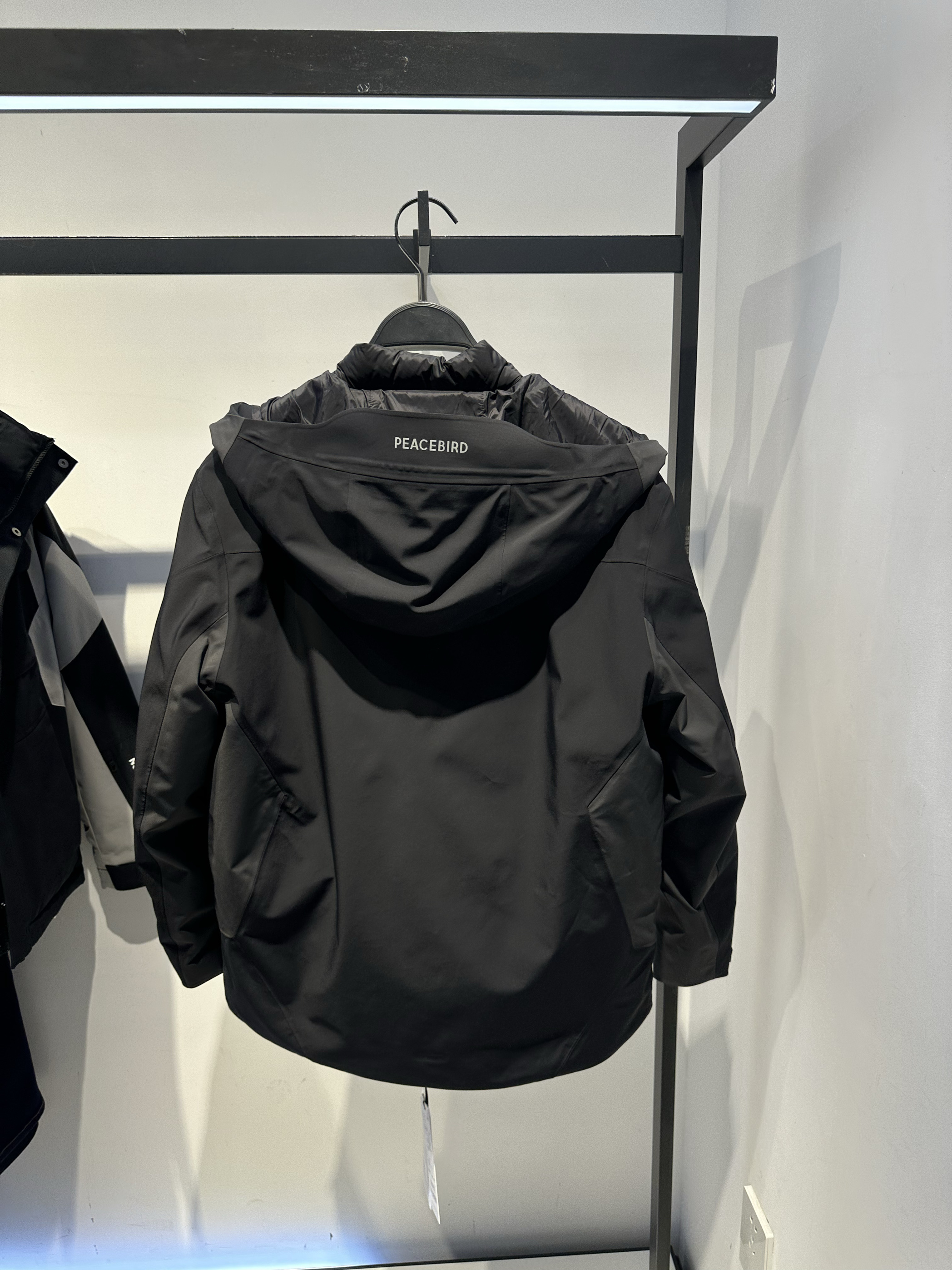 B2BCE440C 太平鸟男装2024冬季新款黑灰色连帽宽松冲锋衣夹克套装