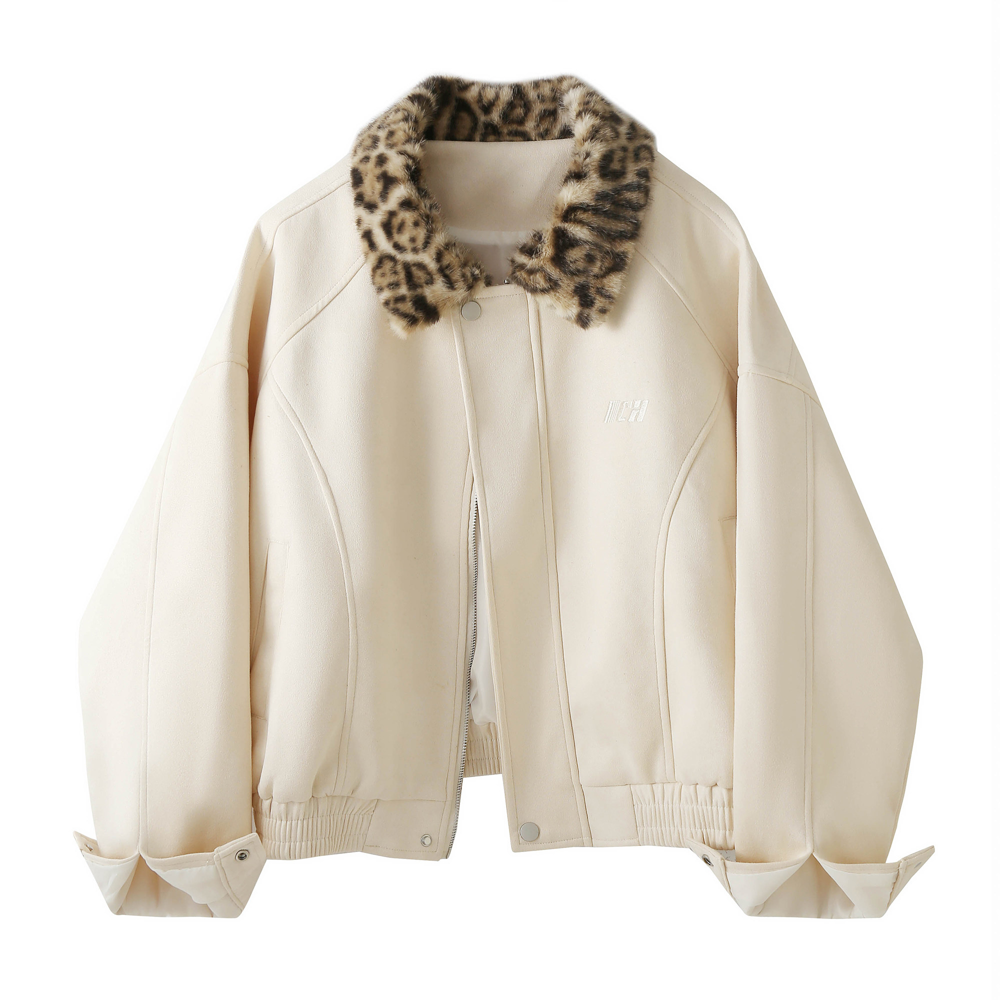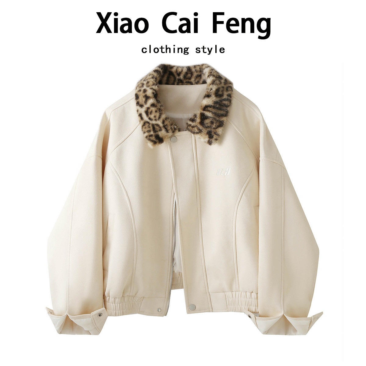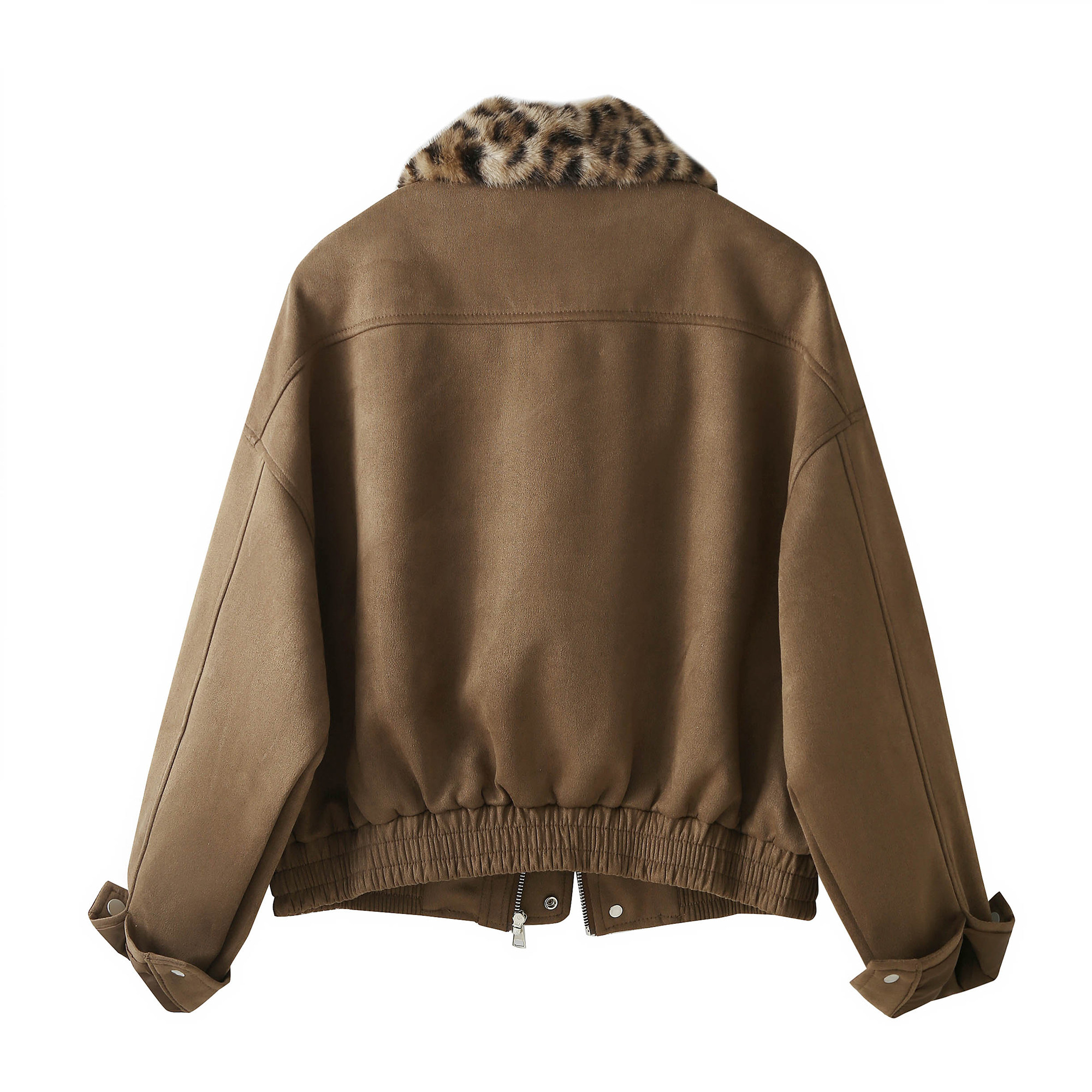 美式复古豹纹毛毛翻领麂皮绒外套女秋冬高级感宽松休闲拉链夹克潮