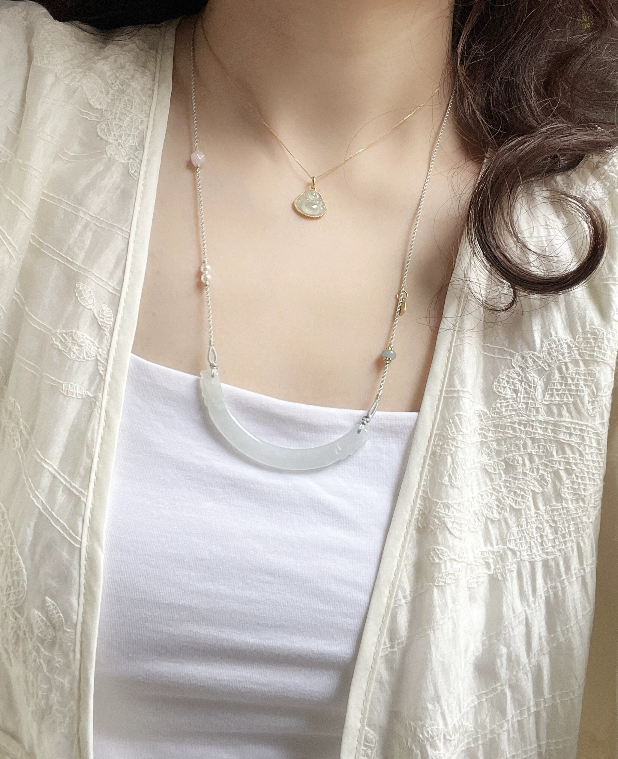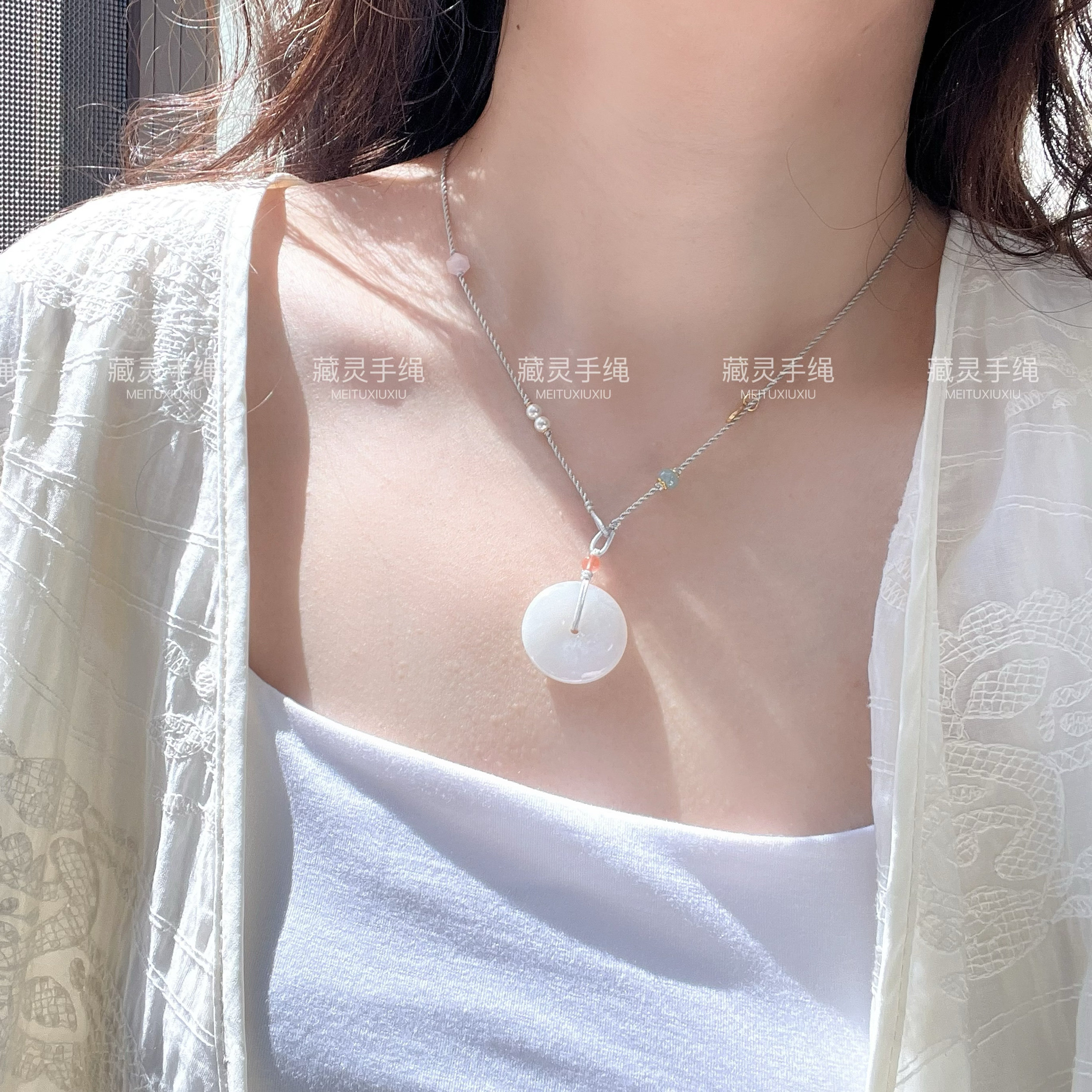 原创新中式清冷感女细项链可调节百搭可挂翡翠平安扣佛水晶吊坠