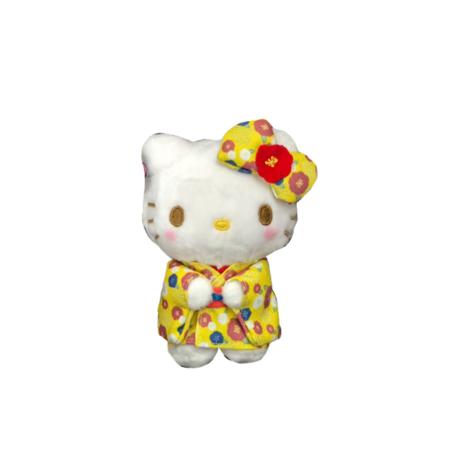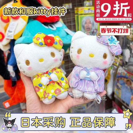 现货日本三丽鸥新款紫色和服hellokitty黄色花朵黑色玫瑰毛绒挂件