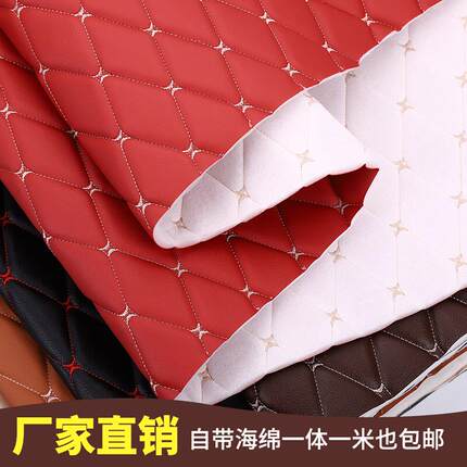 汽车革刺绣软包皮革面料内饰改装车顶棚座椅皮料装饰海绵绣花材料