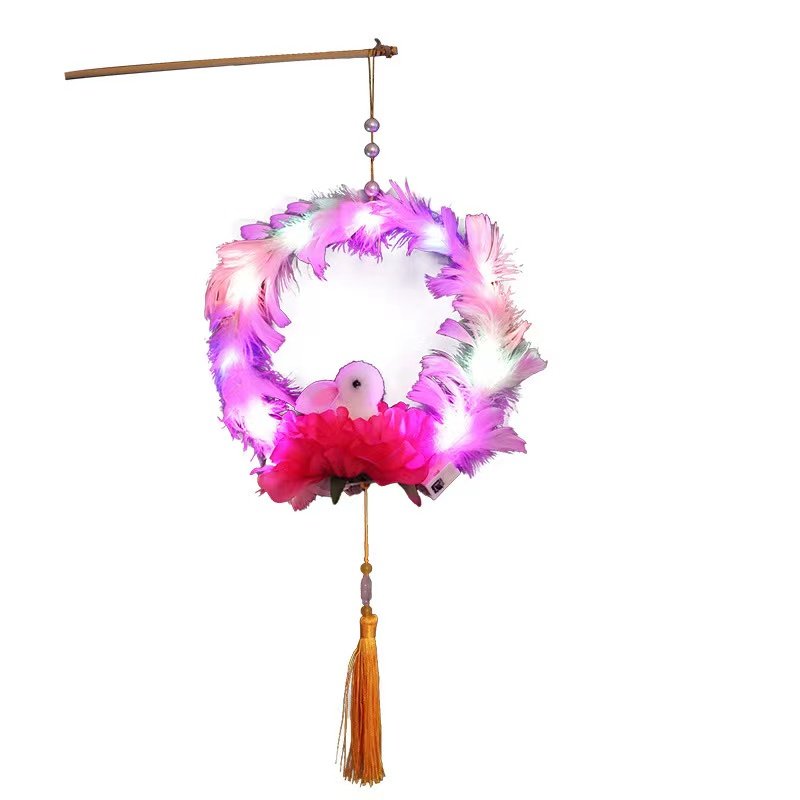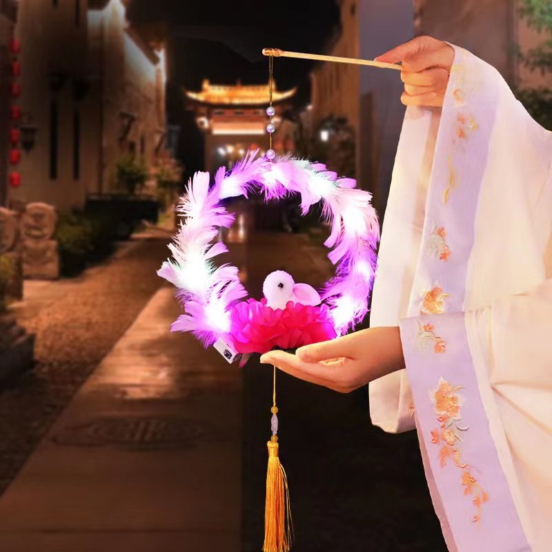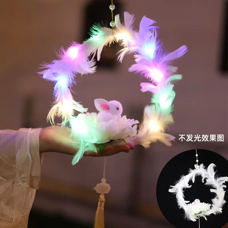 发光羽毛兔子灯笼中秋三挡摆地摊